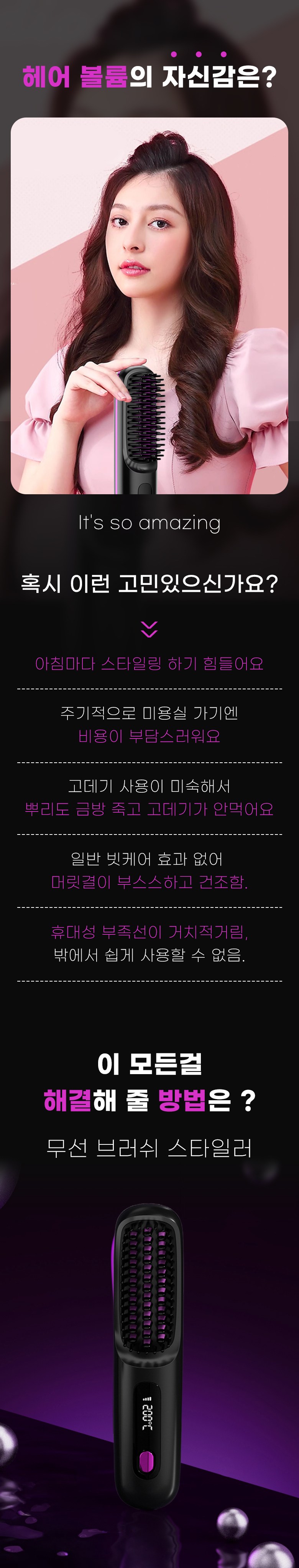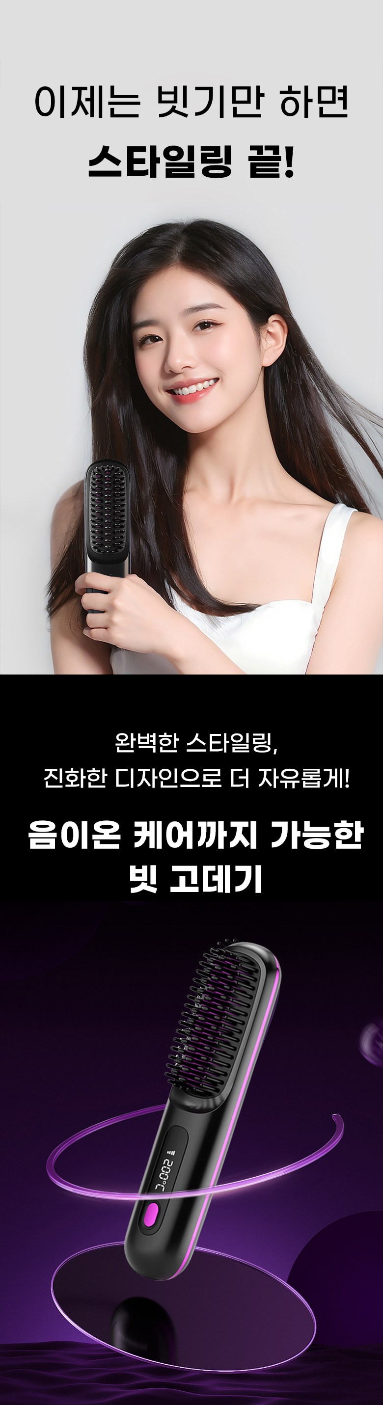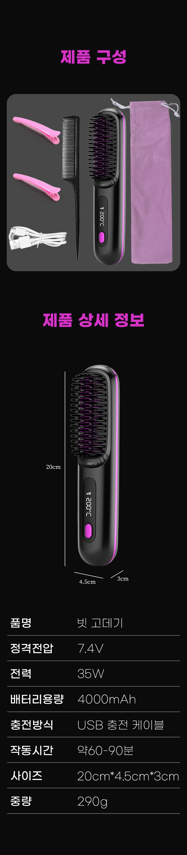 - 구성품: 전동빗+집게핀+수납팩+빗