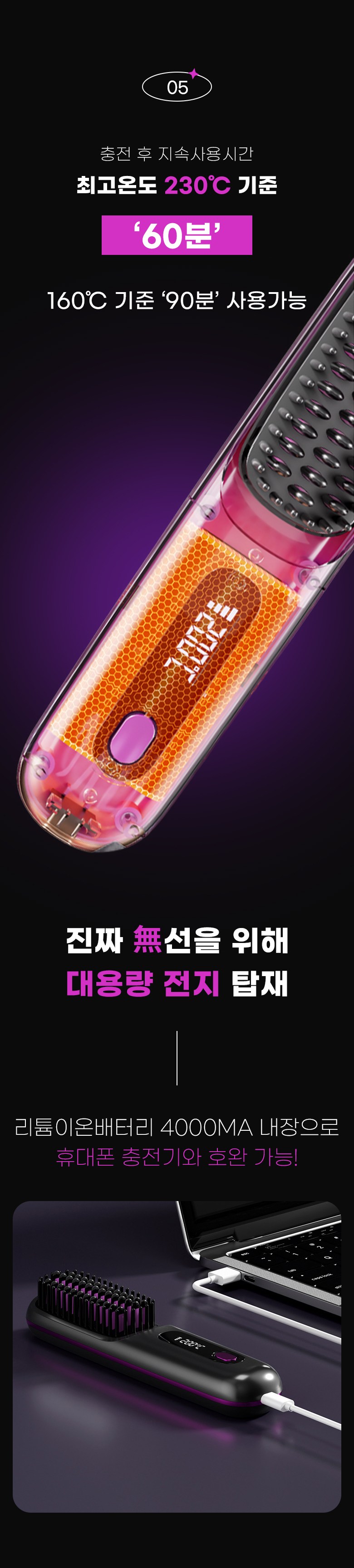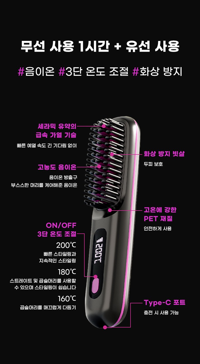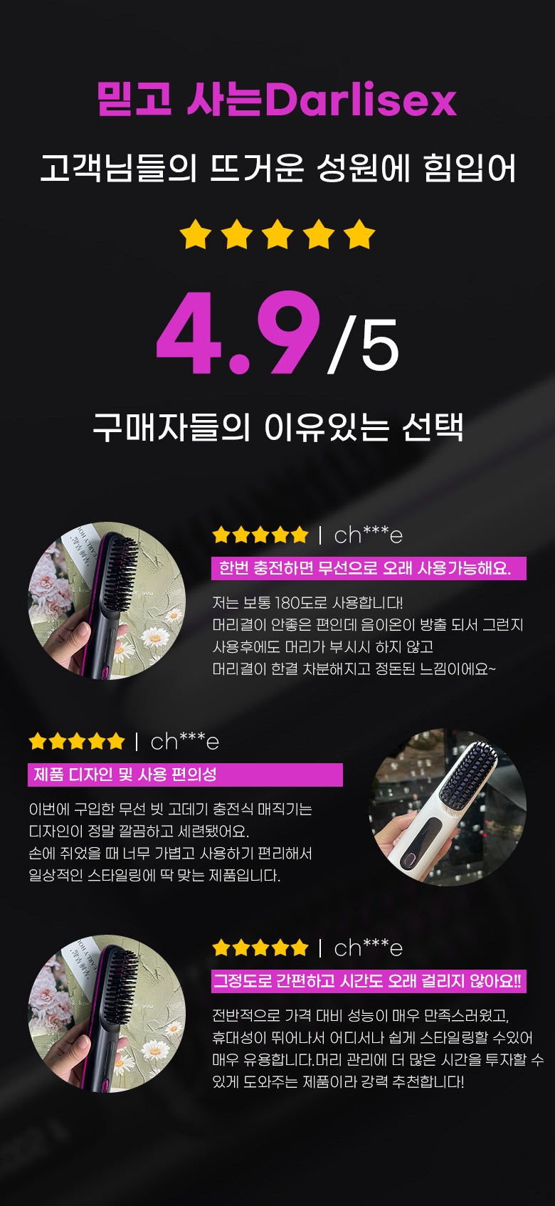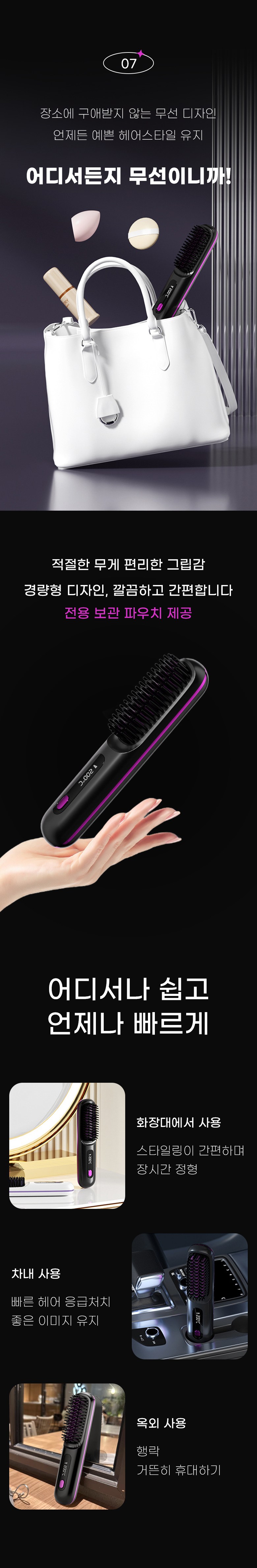 - 구성품: 전동빗+집게핀+수납팩+빗