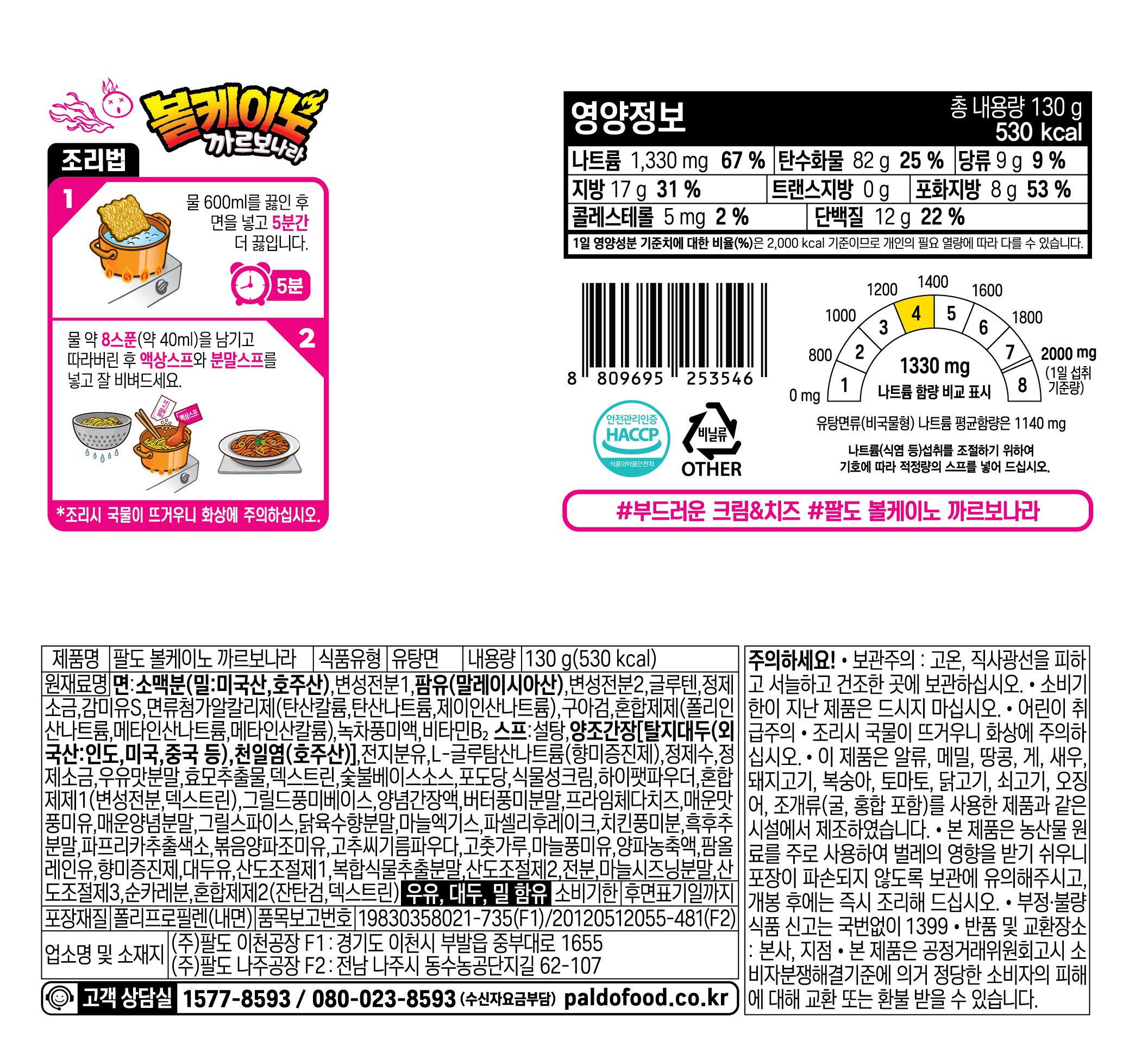 | 포장단위별 내용물의 용량(중량), 수량 | 130g x 12개 | 원재료명 및 함량 | 컨텐츠 참조 |