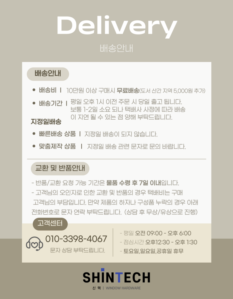- ㆍ모니터 해상도의 차이로 인해 색상이나 이미지가 실제와 달라, 고객이 단순 변심으로 교환/반품을 무료로 요청하는 경우