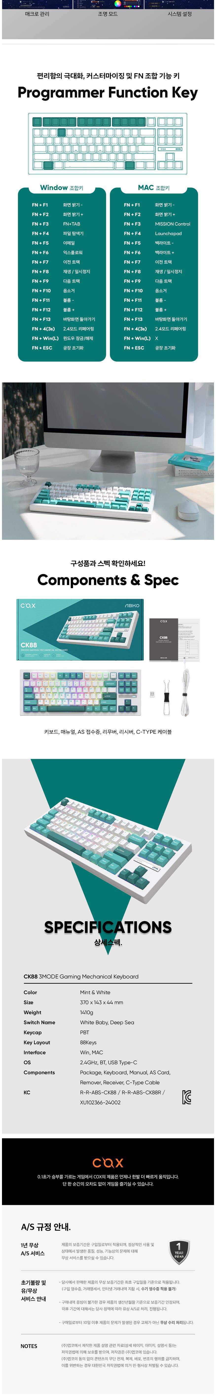 | 품명 및 모델명 | 무선 키보드, CK88 | KC 인증정보 | 키보드: R-R-ABS-CK88, 동글: R-R-ABS-CK88R, 전지: XU102366-24002A |