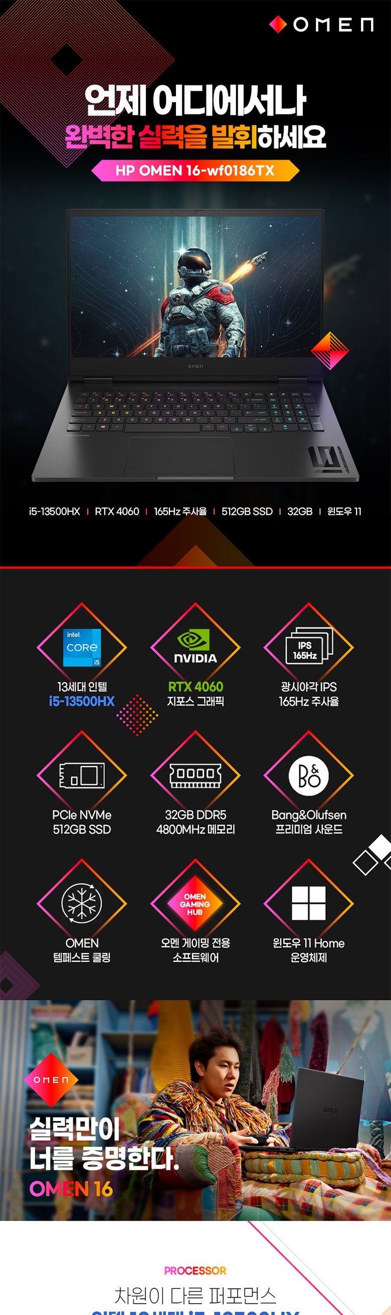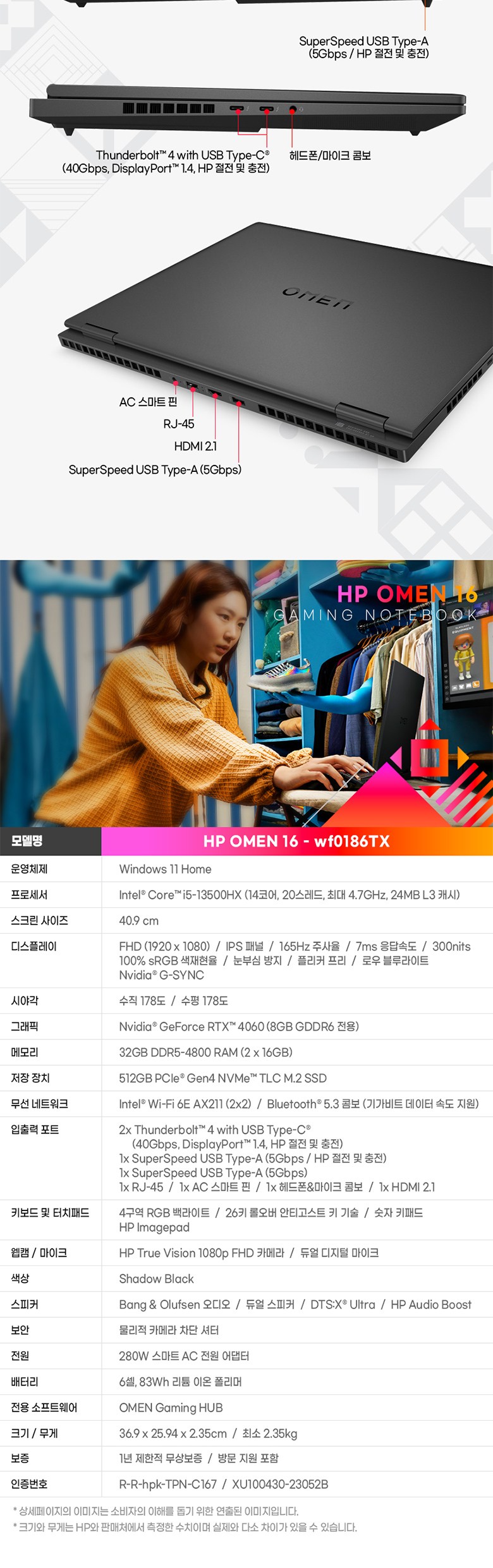 | 품명 및 모델명 | 노트북 컴퓨터/ OMEN by HP Gaming Laptop 16 | KC 인증정보 | 노트북: XU100430-23052B, R-R-hpk-TPN-C167 , SSD: R-R-OJN-Z9X1 |