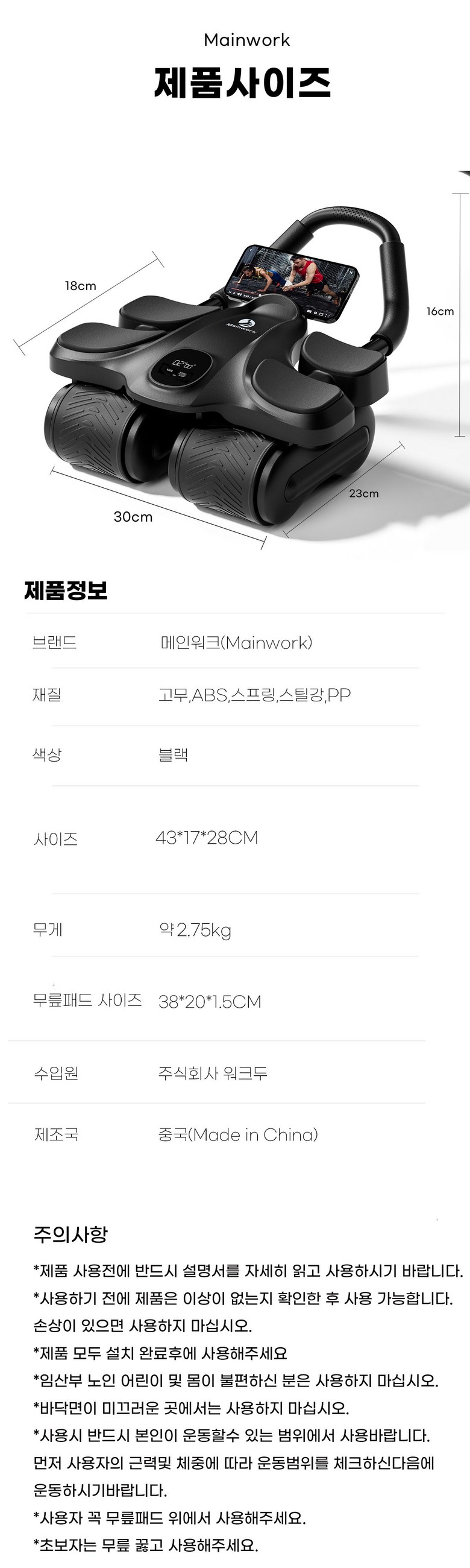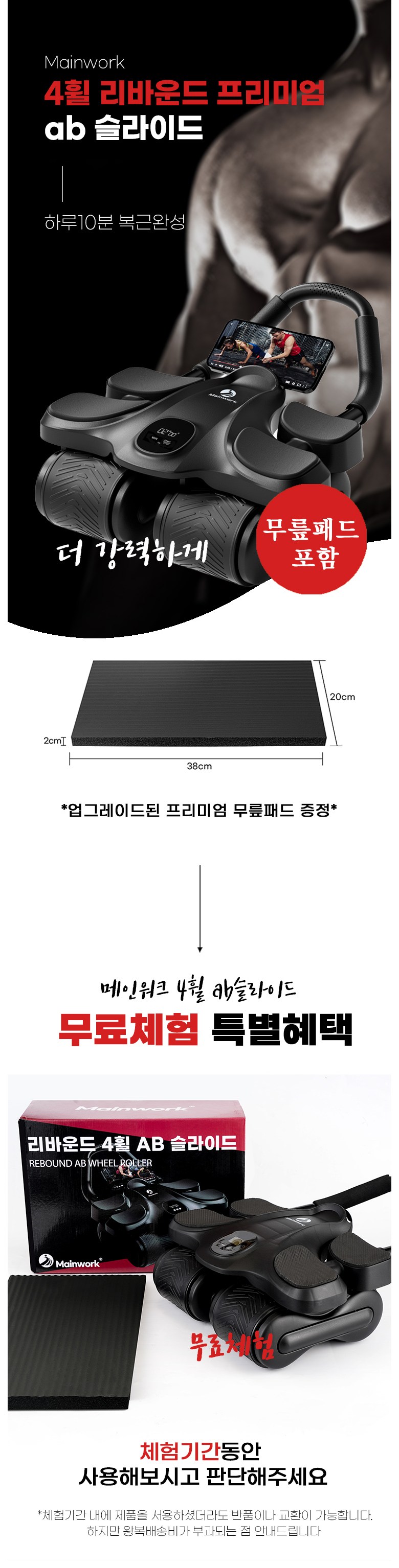 | 품명 및 모델명 | 메인워크 AB 슬라이드 무소음 코어 복근 운동 기구 리바운드 ab 롤 아웃 + 프리미엄 무릎패드 | KC 인증정보 | B451R694-24001 |