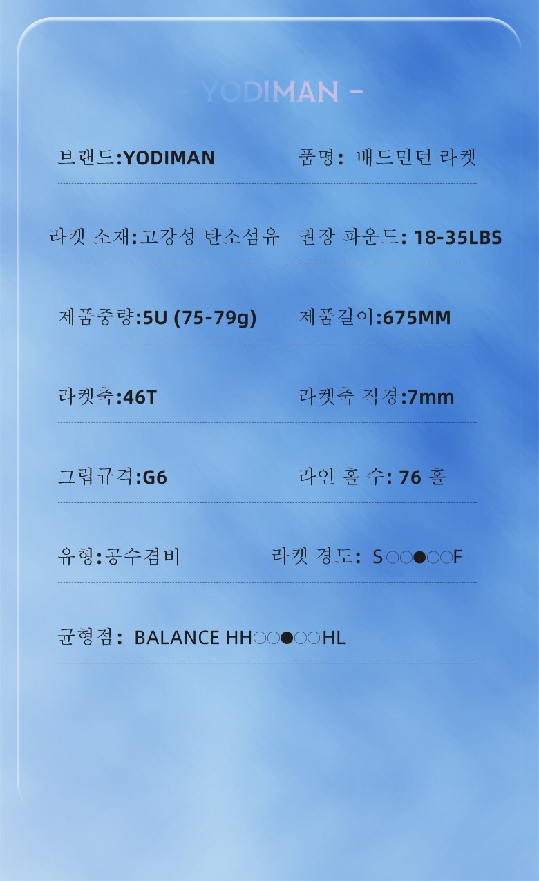 YODIMAN 배드민턴 라켓 풀 카본 5U 초경량 남녀 프로급