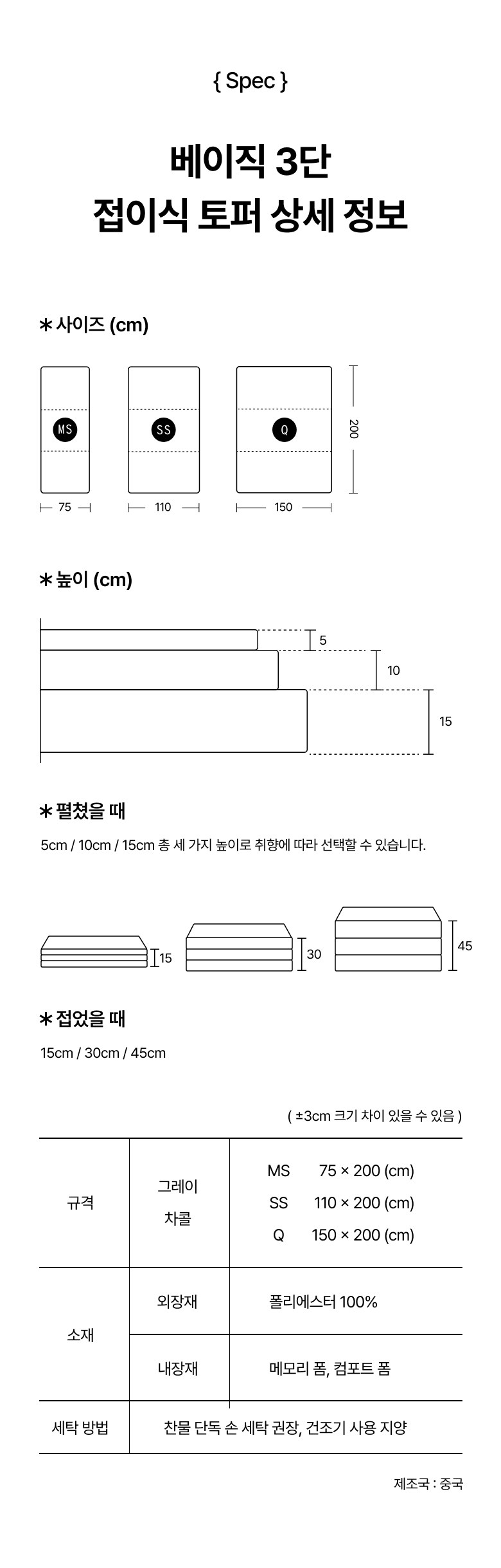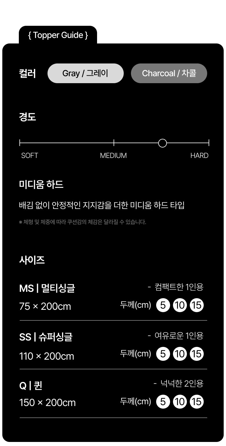| 색상 | 그레이, 차콜 | 구성품 | 매트리스 본품 + 겉커버 포함 |