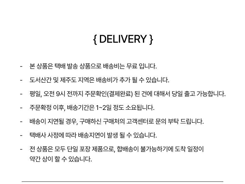 - ㆍ모니터 해상도의 차이로 인해 색상이나 이미지가 실제와 달라, 고객이 단순 변심으로 교환/반품을 무료로 요청하는 경우