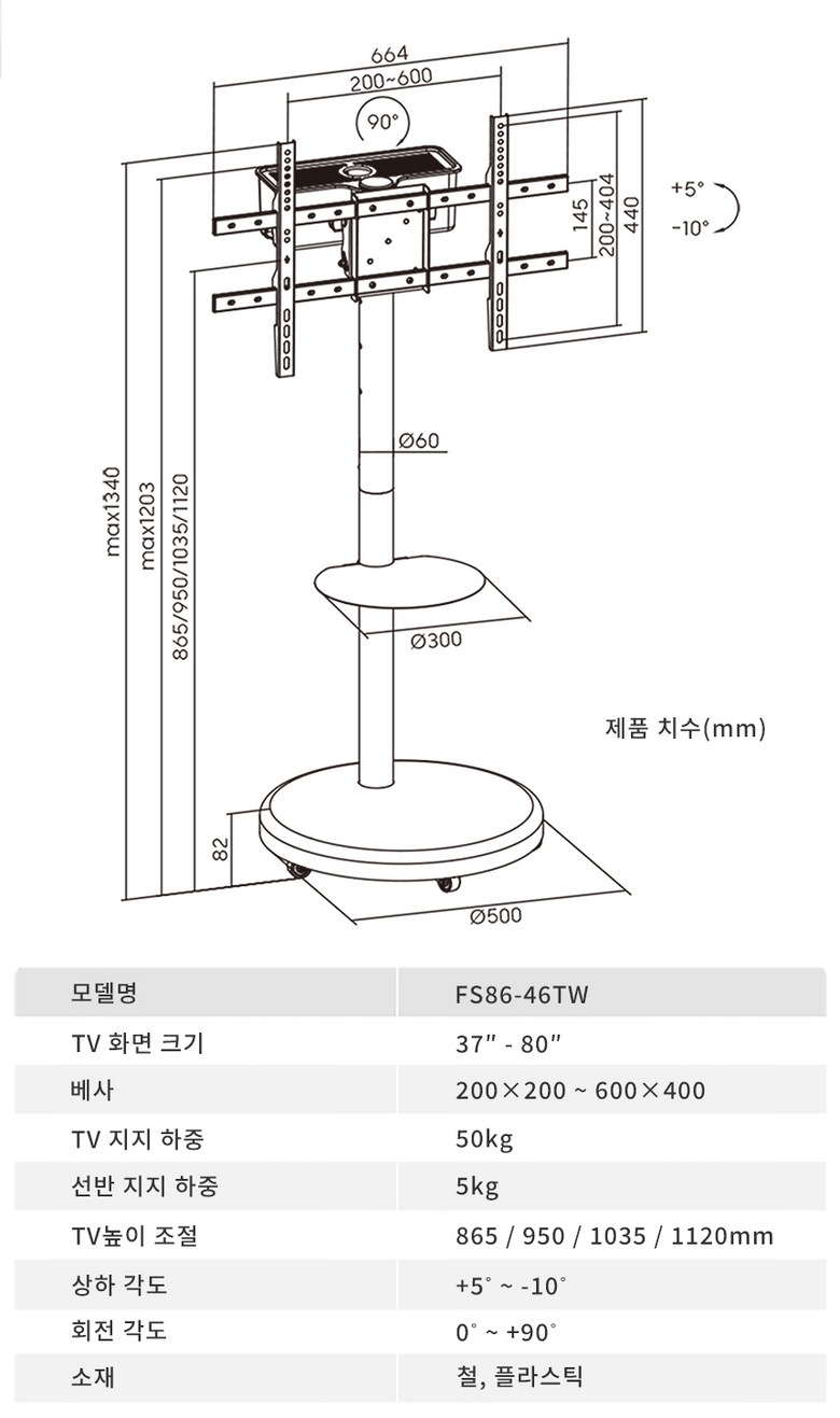 | 품명 및 모델명 | 이동식티비거치대 VM86-46TW | 인증/허가 사항 | 해당사항없음 |