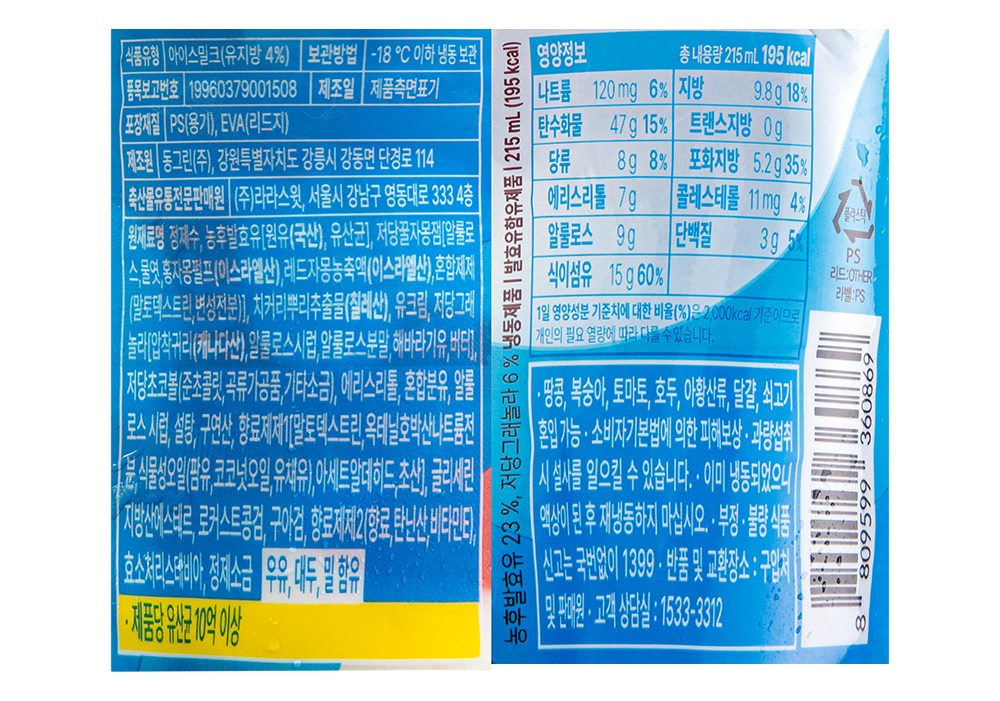 | 생산자 및 소재지 | 컨텐츠 참조 | 제조연월일, 소비기한 또는 품질유지기한 | 업데이트 예정 |