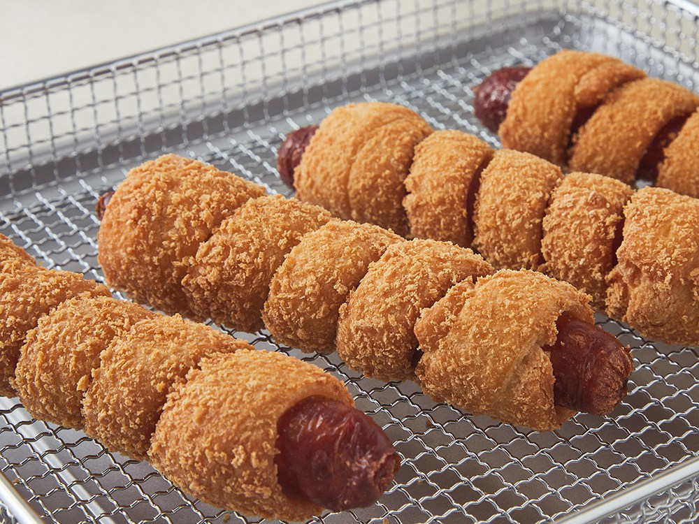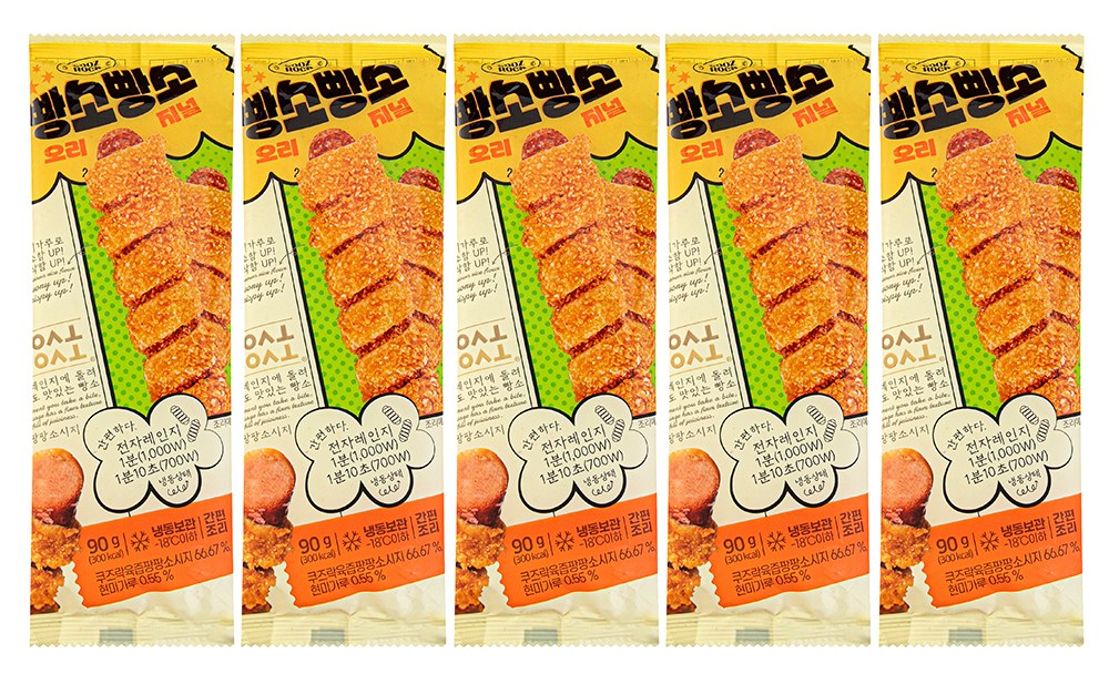 길쭉한 소시지에, 빵 반죽을 뱅글뱅글 감은 빵소빵소예요. 한입 먹어보면 입안에서 육즙이 팡팡 터지는데요. 현미가루로 고소한 맛과 바삭함을 더했답니다. 전자레인지나 에어프라이어로 조리해 즐겨보세요.