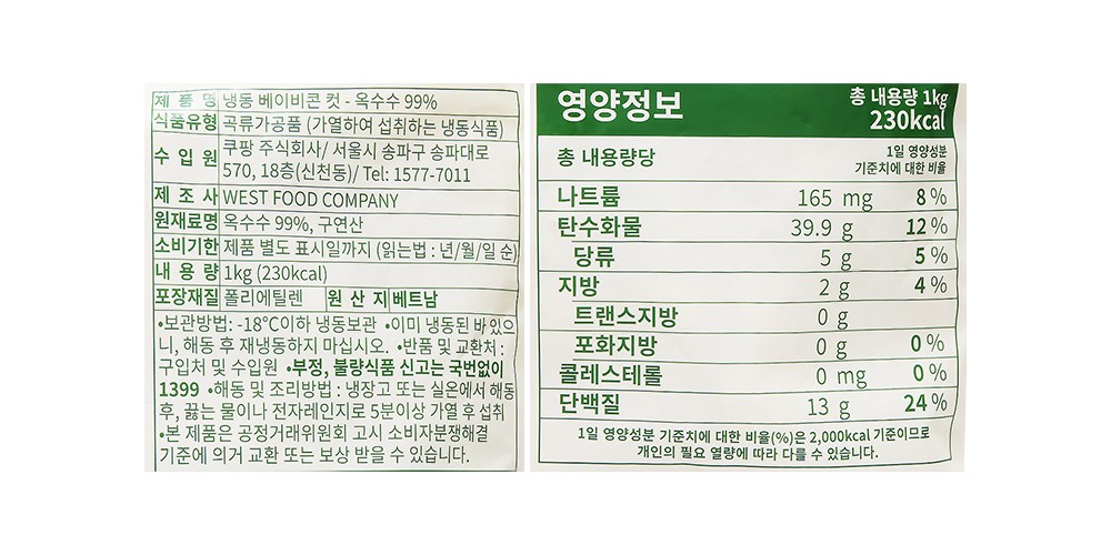 냉동 베이비콘 컷