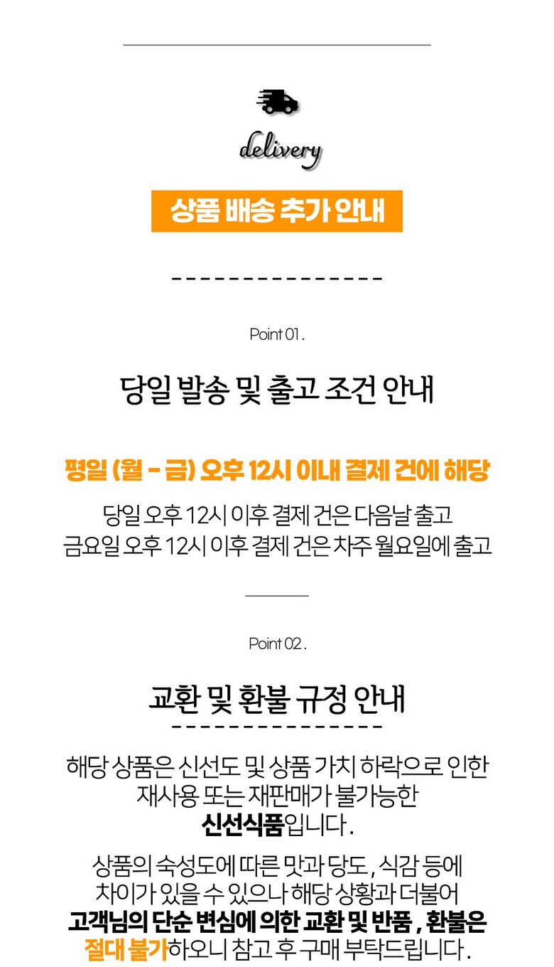 - ㆍ교환/반품에 관한 일반적인 사항은 판매자가 제시사항보다 관계법령이 우선합니다.