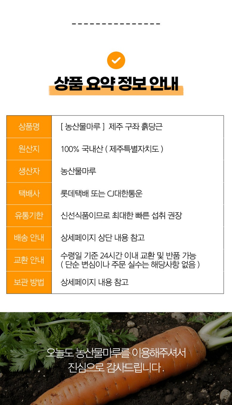 | 품목 또는 명칭 | 흙당근 | 포장단위별 내용물의 용량(중량),수량,크기 | 2kg,3kg,5kg |