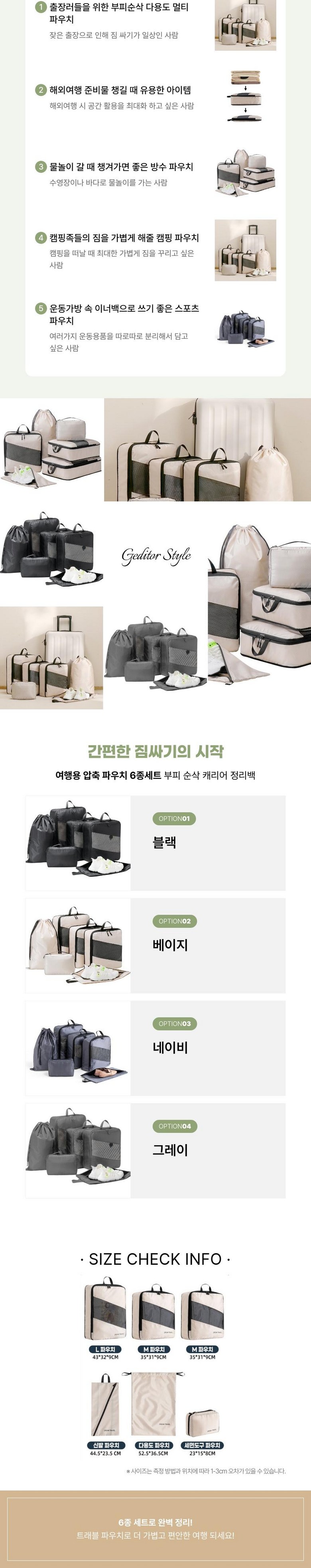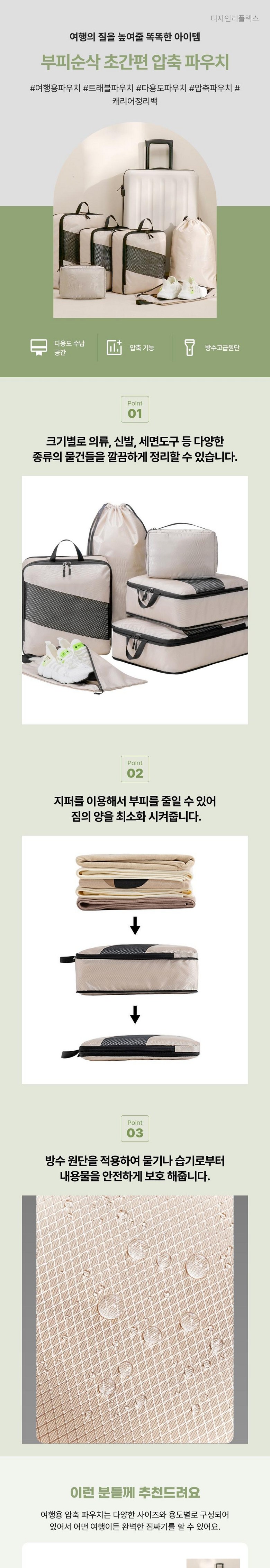 | 종류 | 여행용 압축 파우치 6종 세트 | 소재 | 폴리에스터 |