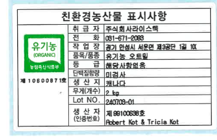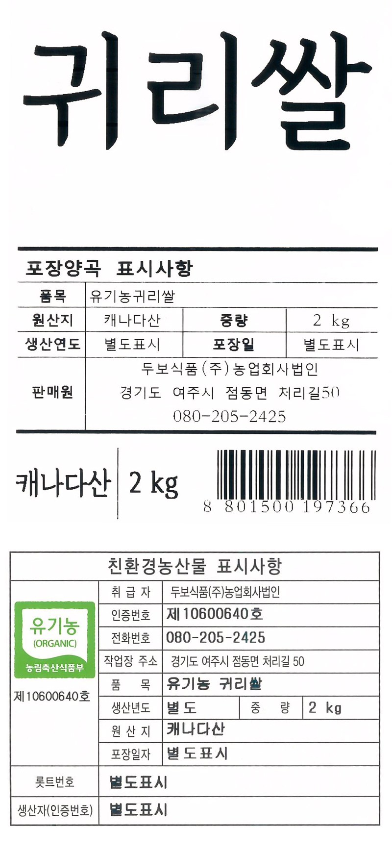 | 제조연월일, 소비기한 또는 품질유지기한 | 제조년월일 : 2025년 10월 01일 이후인 제조상품<br />생산일자 : 2023 | 세부 품목군별 표시사항 | 농수산물 : 유전자변형(해당 없음) / 지리적 표시사항(해당 없음) |