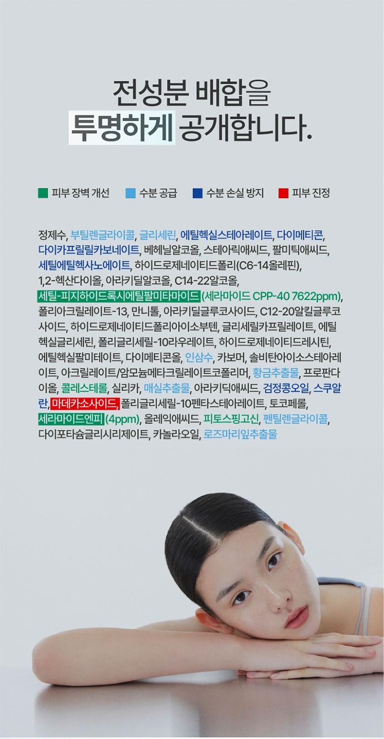 | 화장품제조업자, 화장품책임판매업자 및 맞춤형화장품판매업자 | 컨텐츠 참조 | 제조국 | 컨텐츠 참조 |