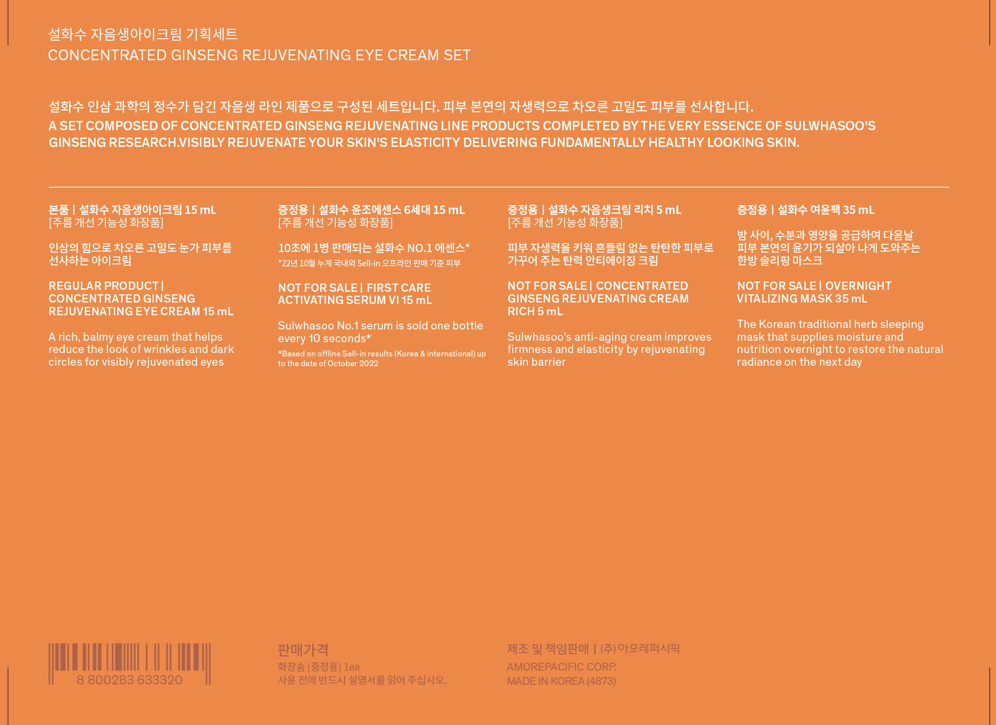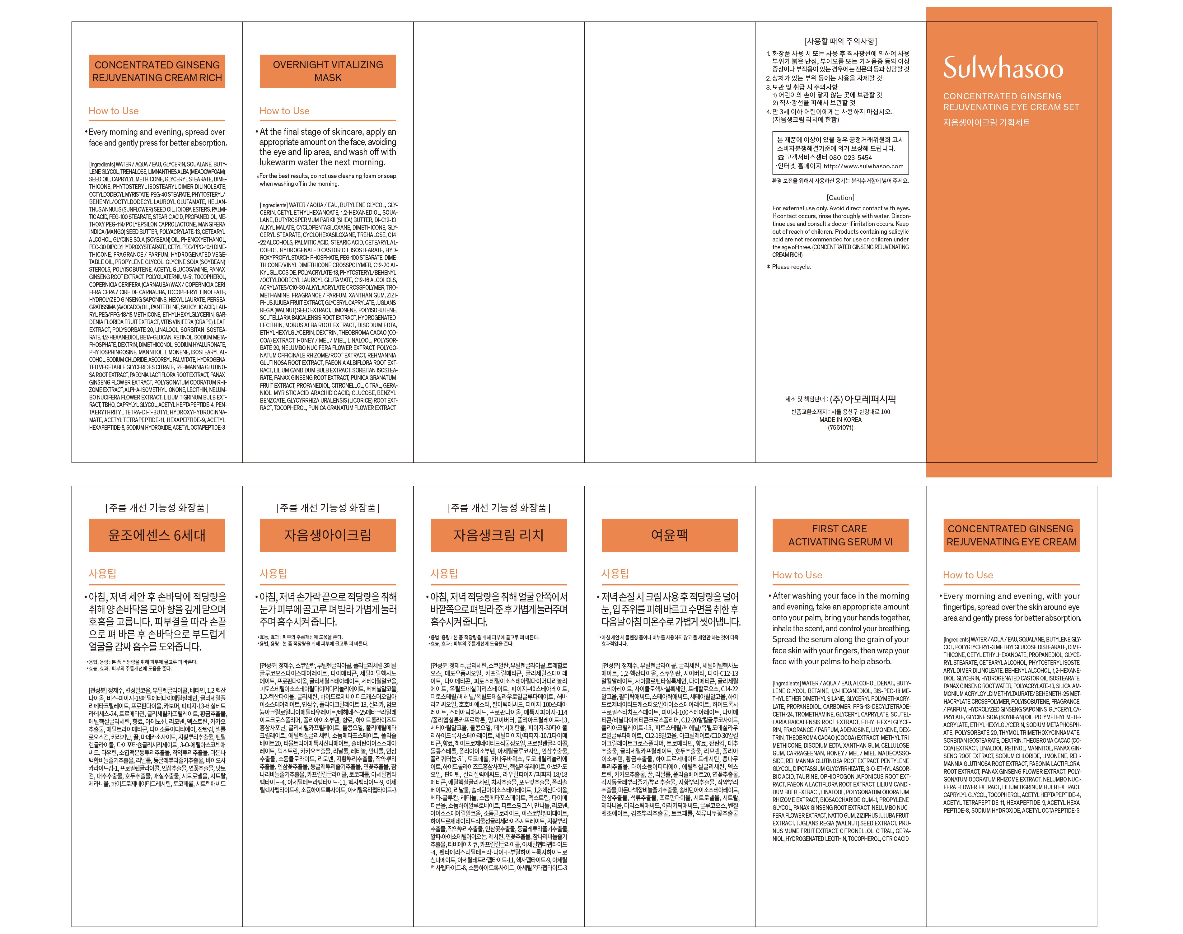 - 구성품: 아이크림 15ml + 에센스 15ml + 크림 리치 5ml + 여윤팩 35ml