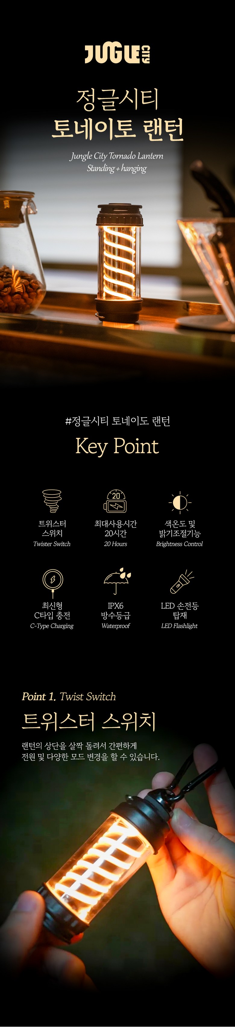 [정글시티] 토네이도 LED 캠핑랜턴 백패킹 차박 감성조명