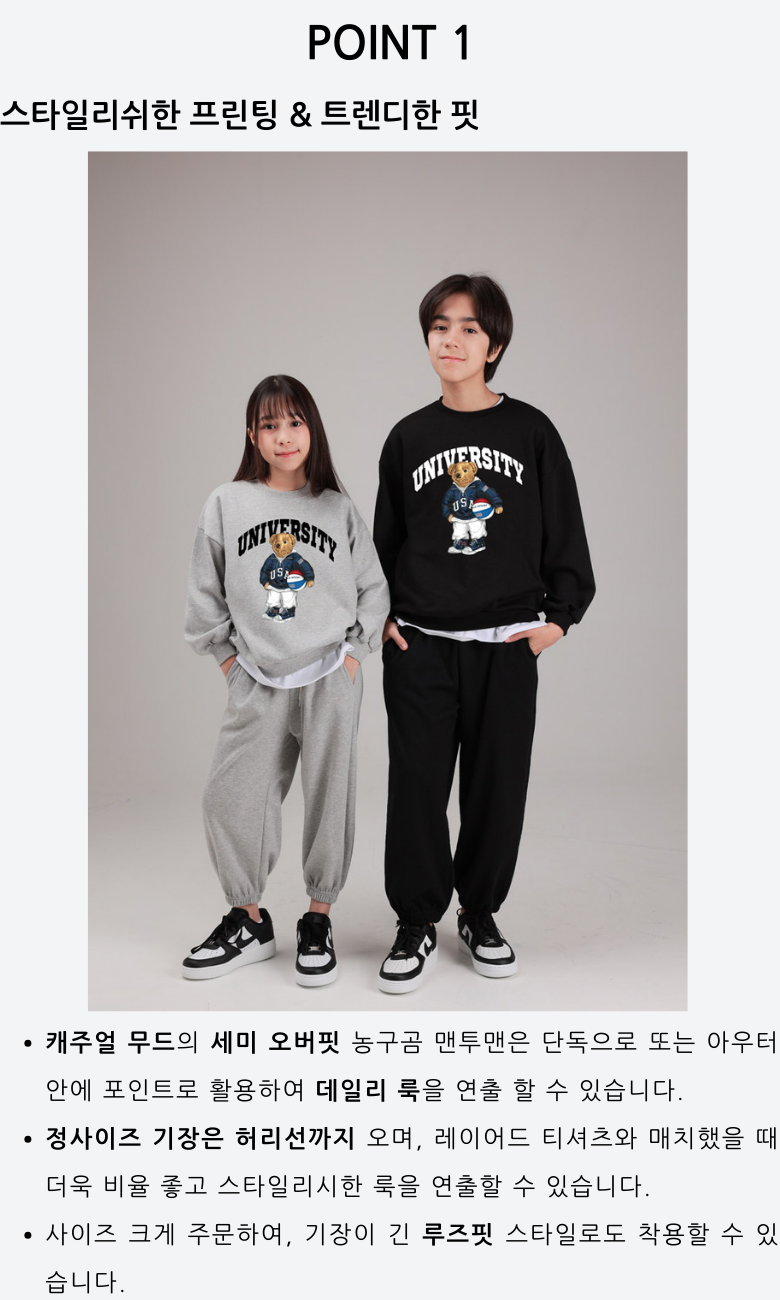 [국내생산] 마고주니어 주니어용 오버핏 농구곰 맨투맨 [키130/키140/키150/키160]