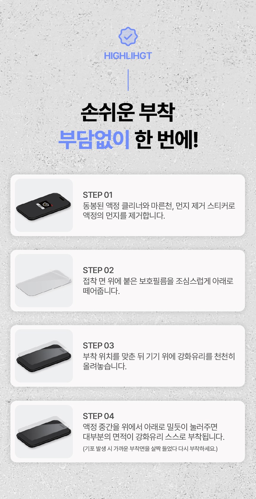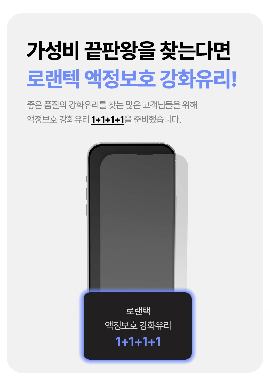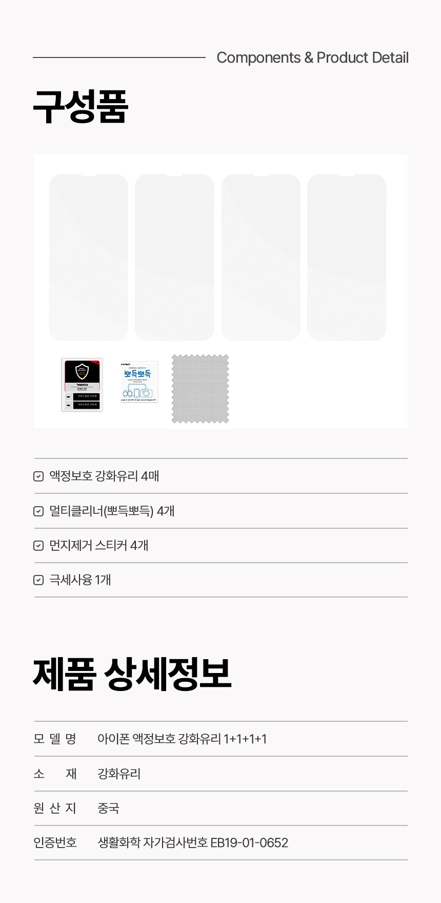 | 품명 및 모델명 | 로랜텍 고화질 9H 스마트폰 호환 아이폰 액정보호필름 강화유리 4개입 | 인증/허가 사항 | 본품 : 해당없음 / 알콜솜 : EB19-01-0652 |