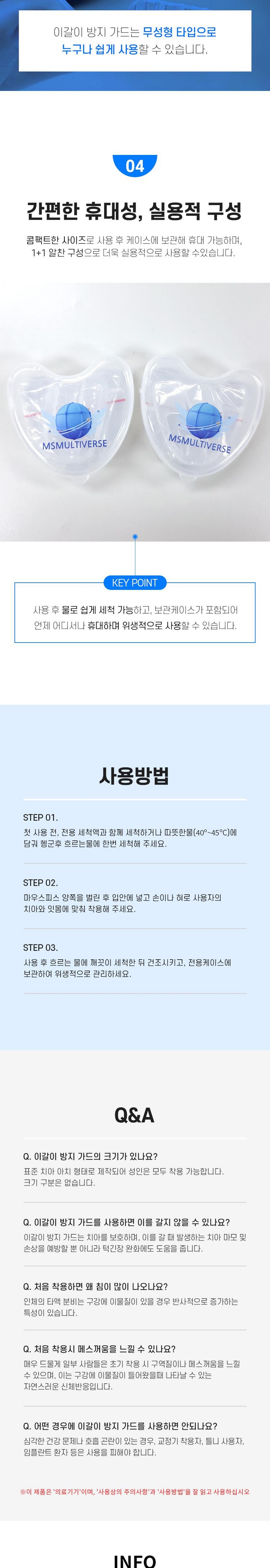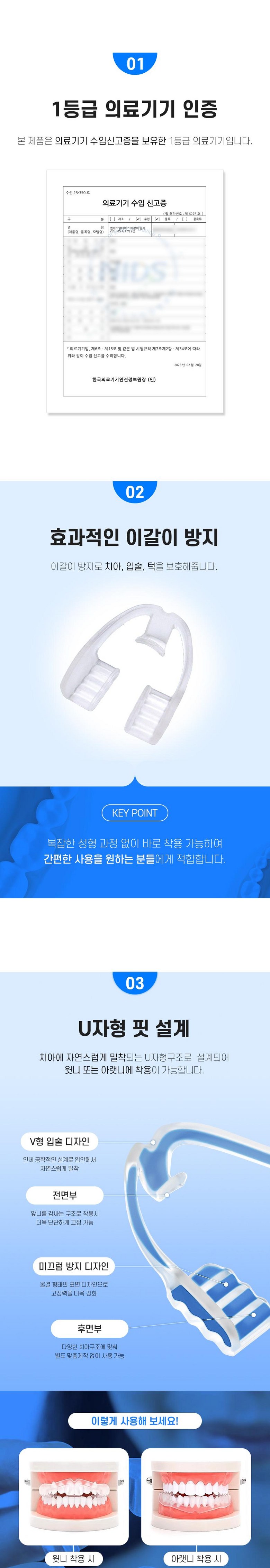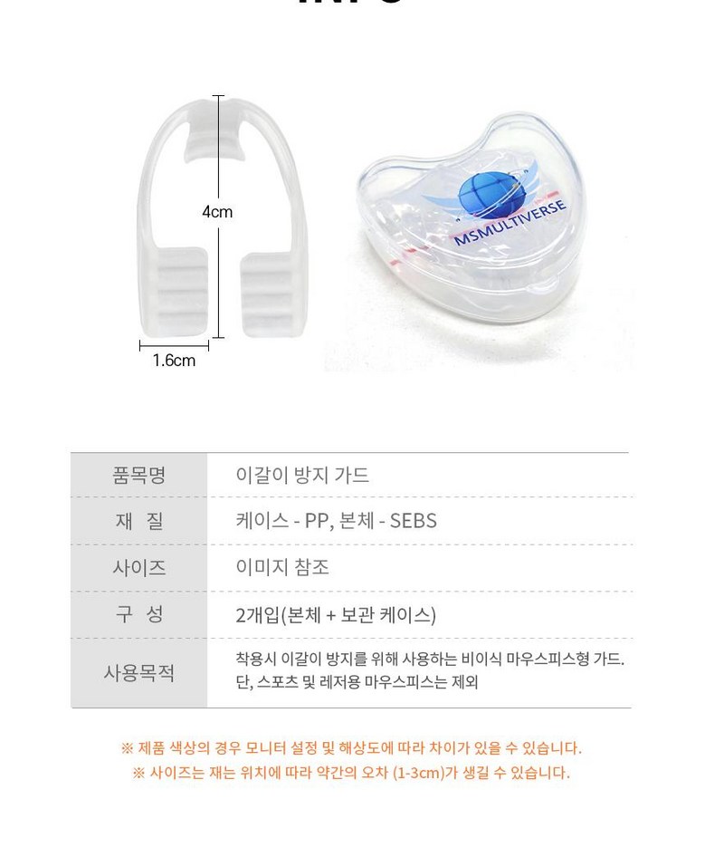 - 제품의 권장 용도: 이갈이 방지