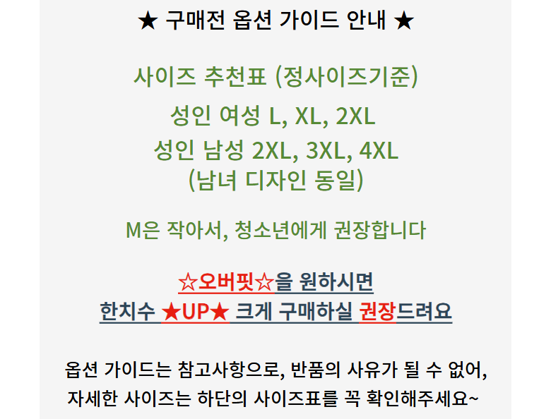 | 치수 | L~4XL 까지 있으며, 상세페이지 하단에 자세한 사이즈 있음 | 제조자(수입자) | 지프(올베스트) |