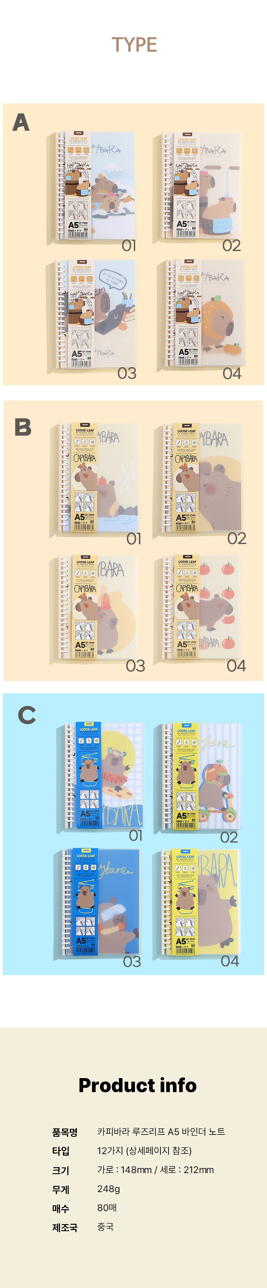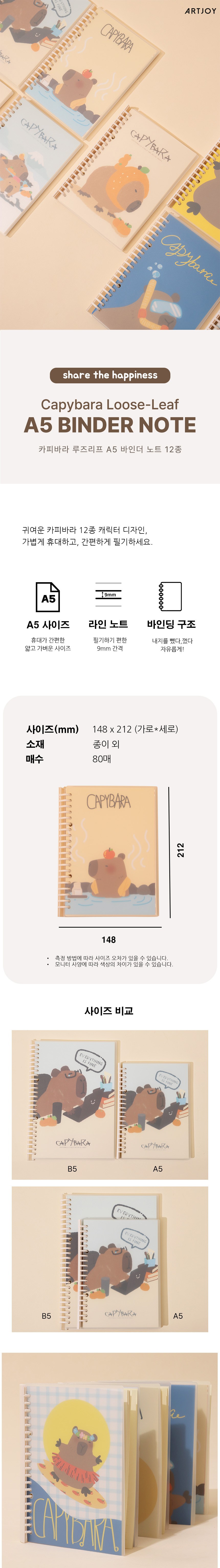 | 품명 및 모델명 | 아트조이 카피바라 루즈리프 A5 바인더 노트 B-03 | 인증/허가 사항 | 해당없음 (14세이상) |