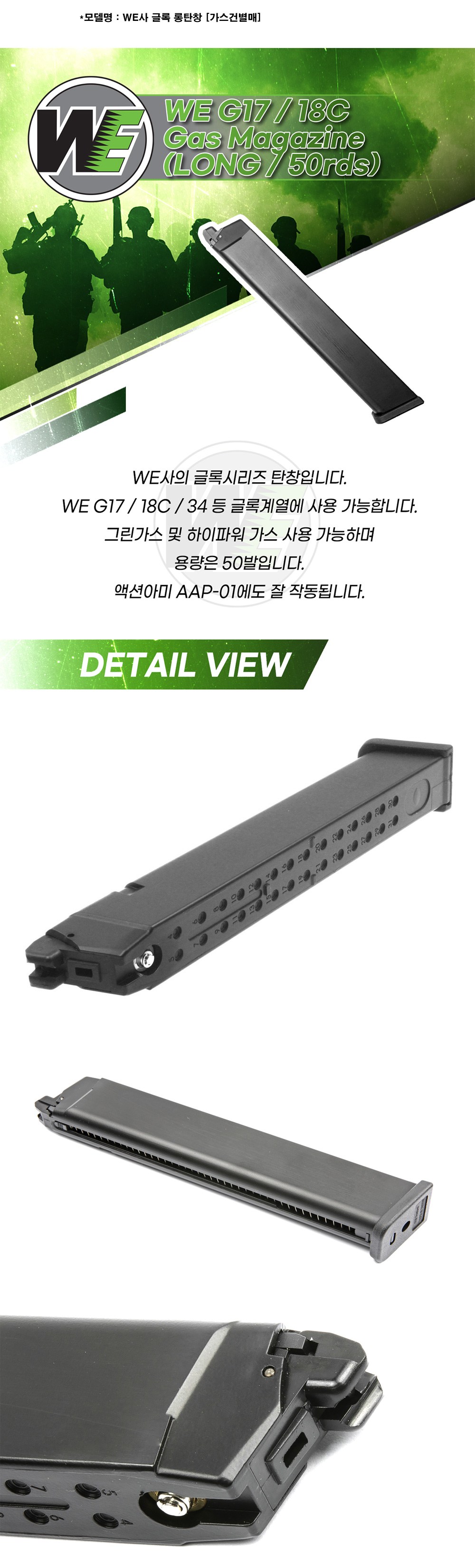 | 품명 및 모델명 | WE사 글록 롱탄창 | KC 인증정보 | 해당없음 |