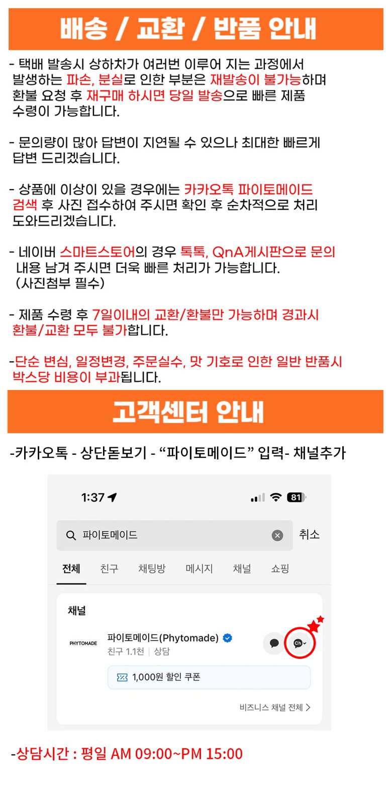 - ㆍ모니터 해상도의 차이로 인해 색상이나 이미지가 실제와 달라, 고객이 단순 변심으로 교환/반품을 무료로 요청하는 경우