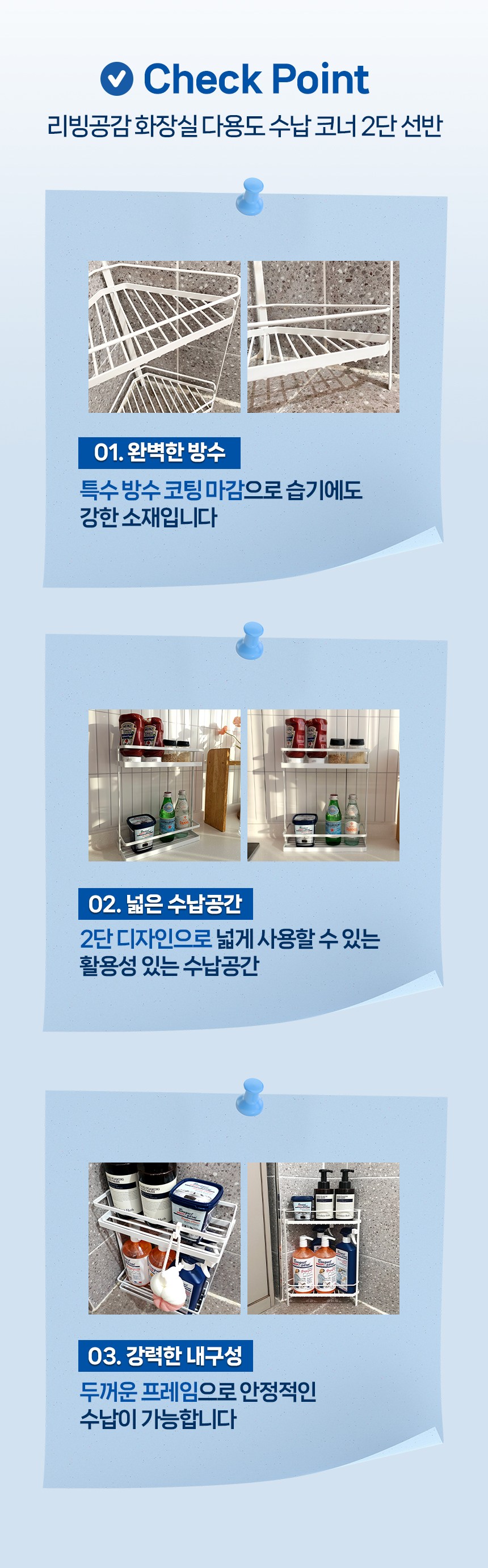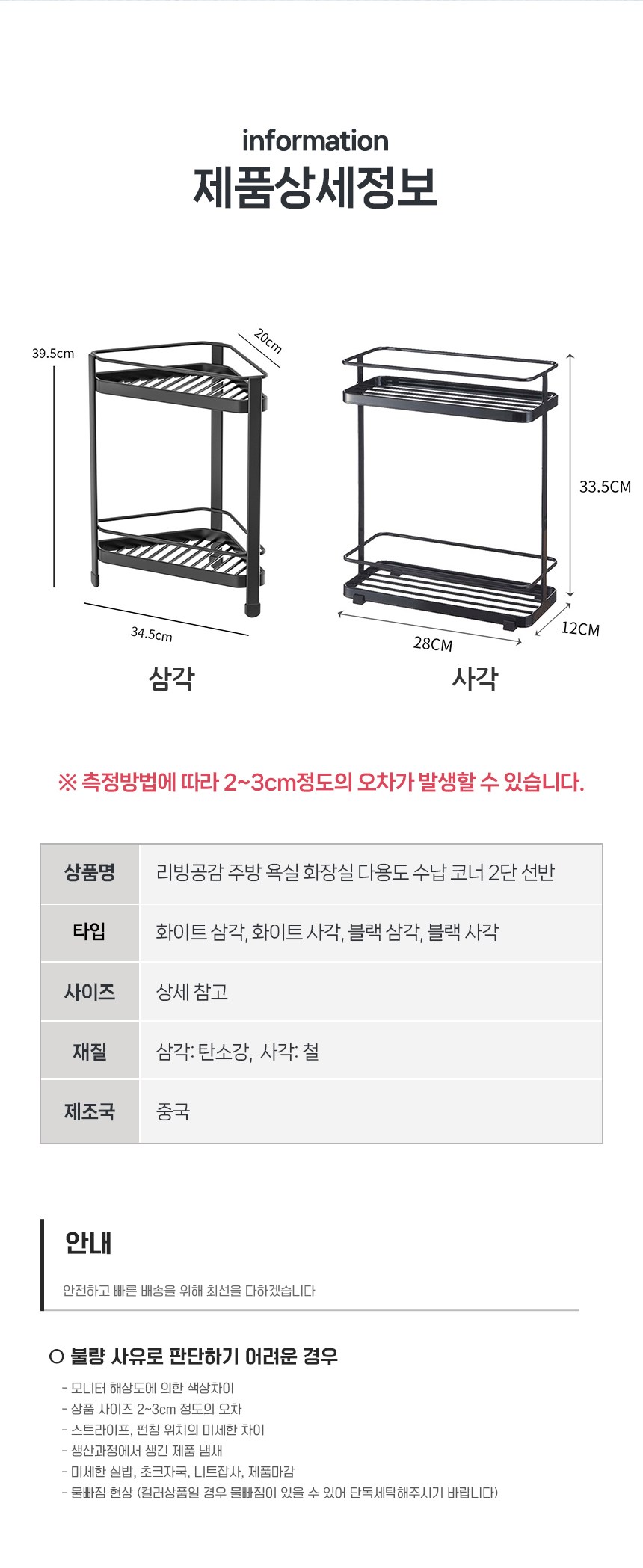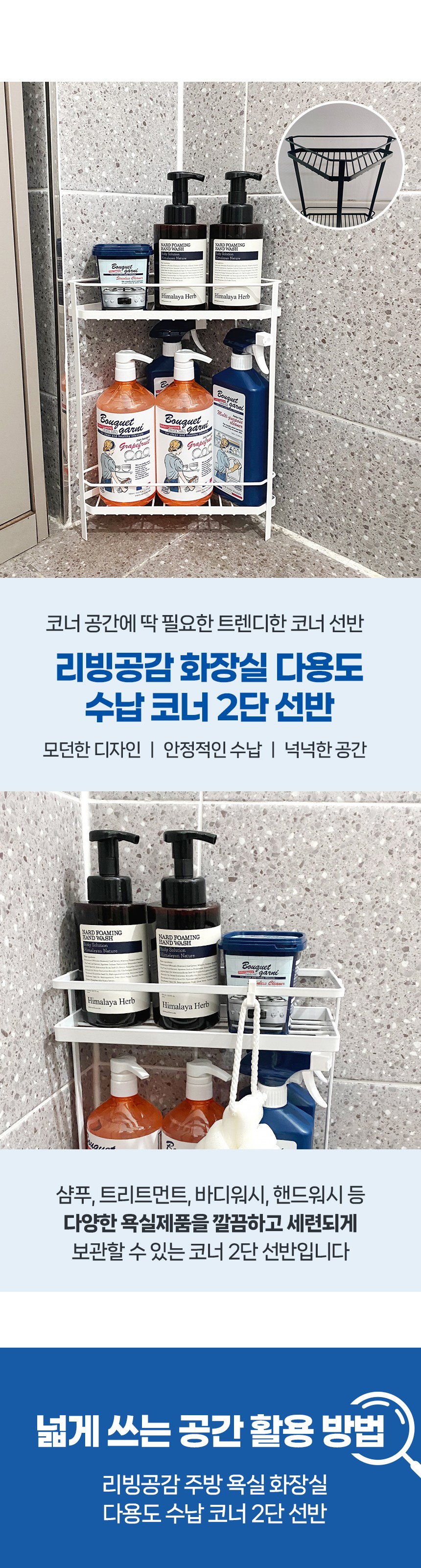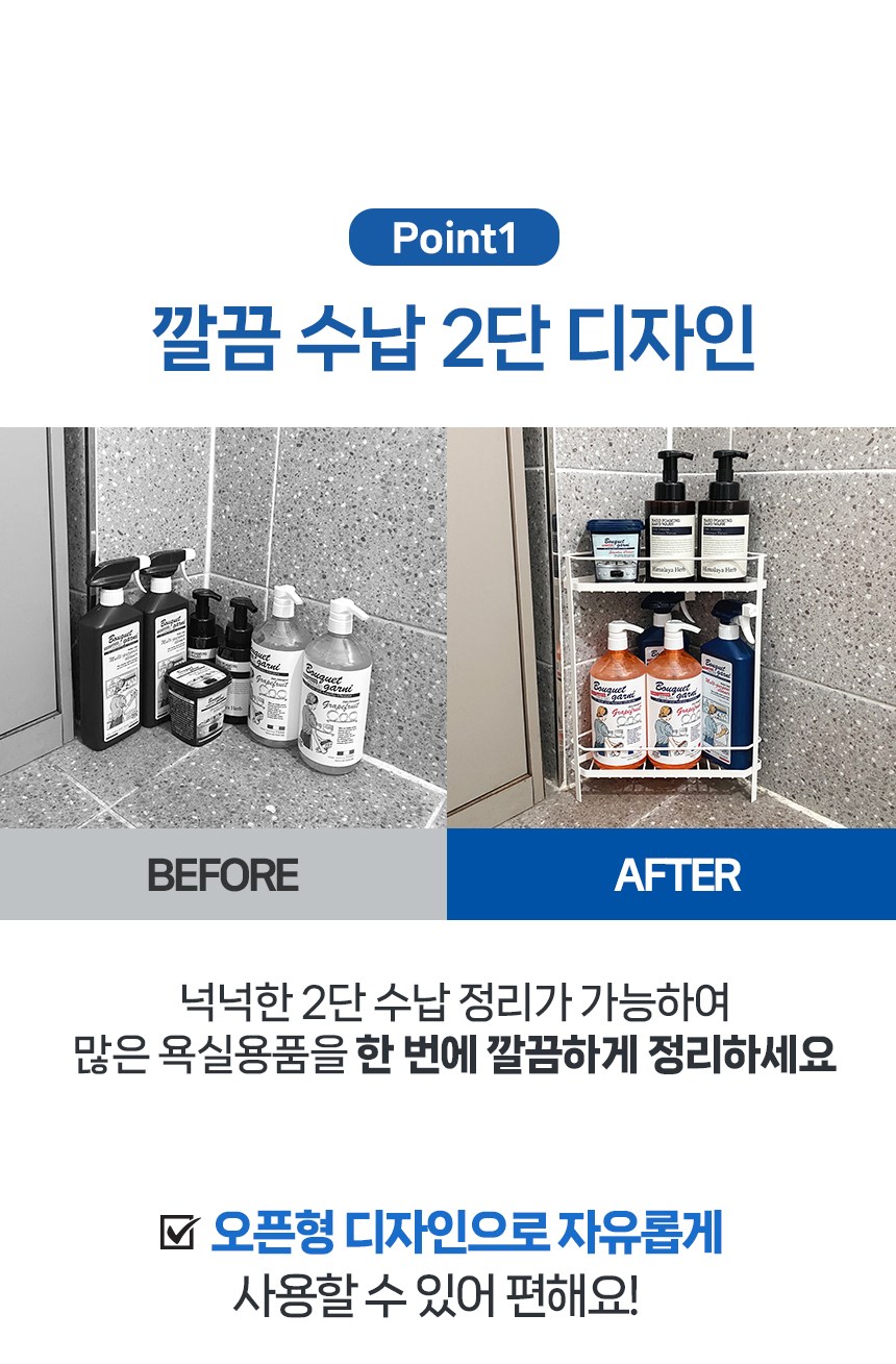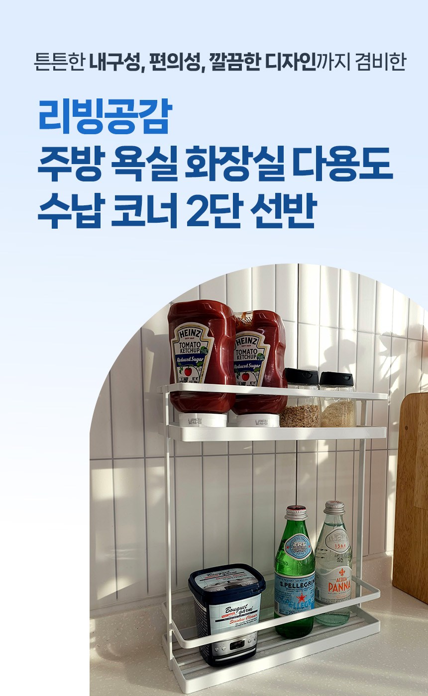 | 품명 및 모델명 | 리빙공감 주방 욕실 화장실 다용도 수납 코너 2단 선반 | 인증/허가 사항 | 해당없음 |