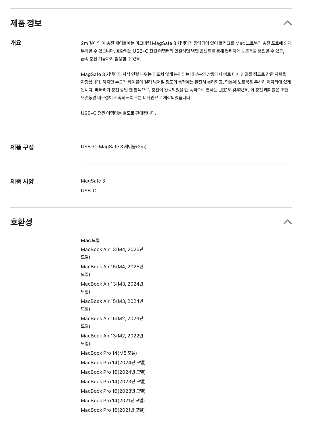 | 품명 및 모델명 | Apple USB-C to Magsafe 3 케이블 2m (MW613FE/A) 1개 2m, A2363( USB-C-MagSafe 3 케이블(2m) | 인증/허가 사항 | 해당없음 |