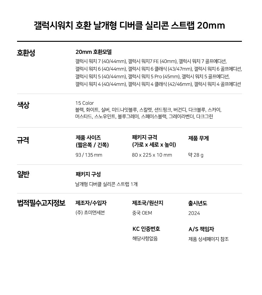 | 품명 및 모델명 | 스페이스쉴드 디버클 마그네틱 실리콘 스마트워치 스트랩 | 인증/허가 사항 | 해당없음 |