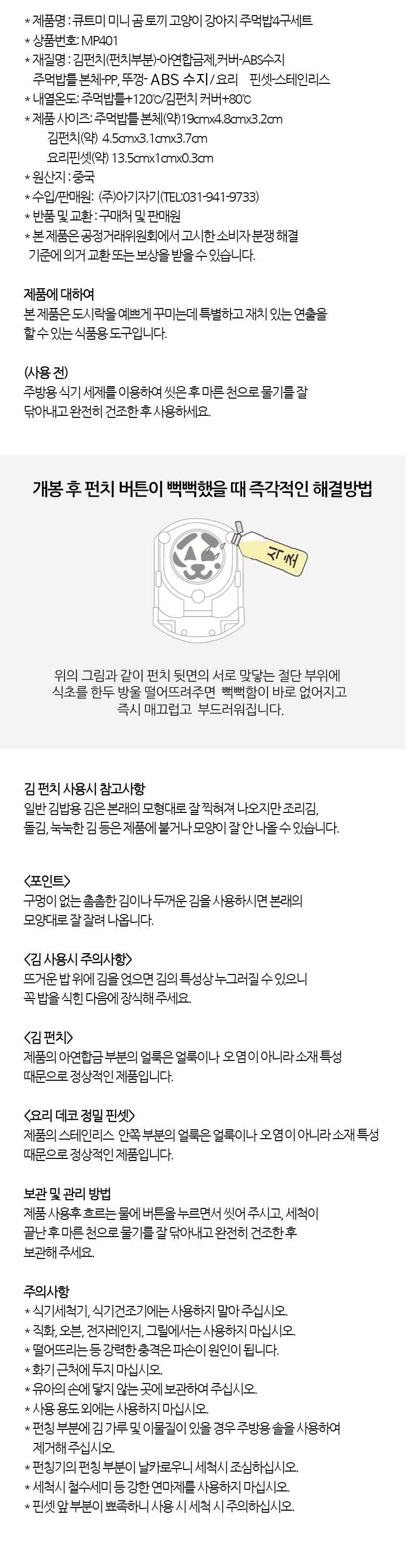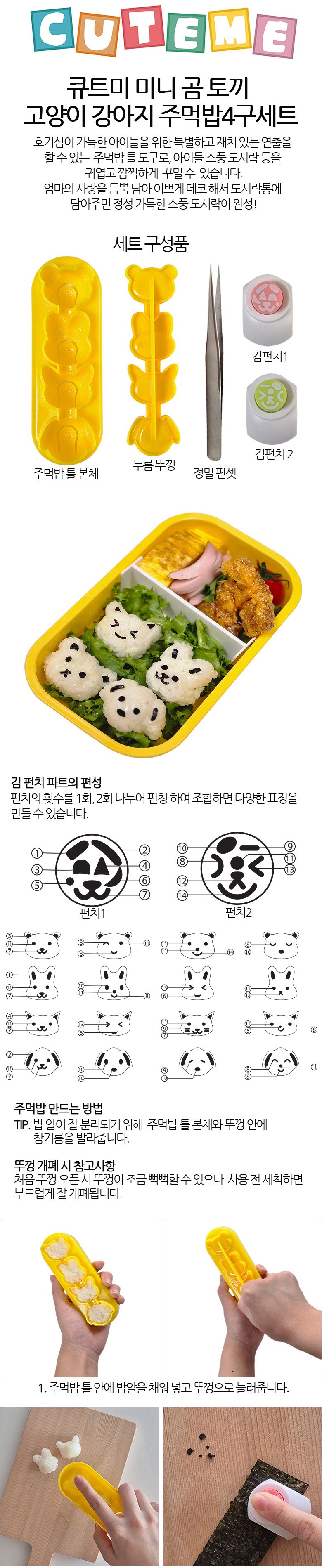 | 품명 및 모델명 | 이홈베이킹 큐트미 미니 곰 토끼 고양이 강아지 주먹밥4구세트 | 재질 | 컨텐츠 참조 |