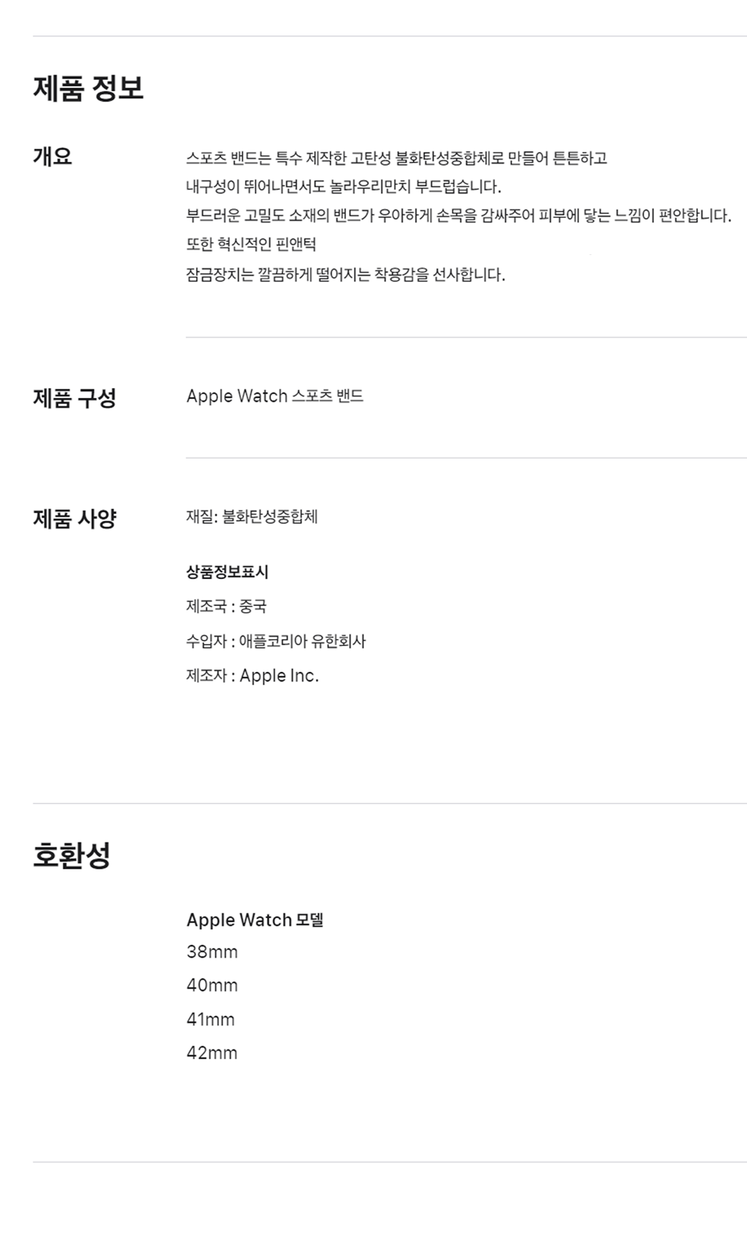 | 품명 및 모델명 | 42mm Starlight Sport Band - M/L | 인증/허가 사항 | 해당없음 |