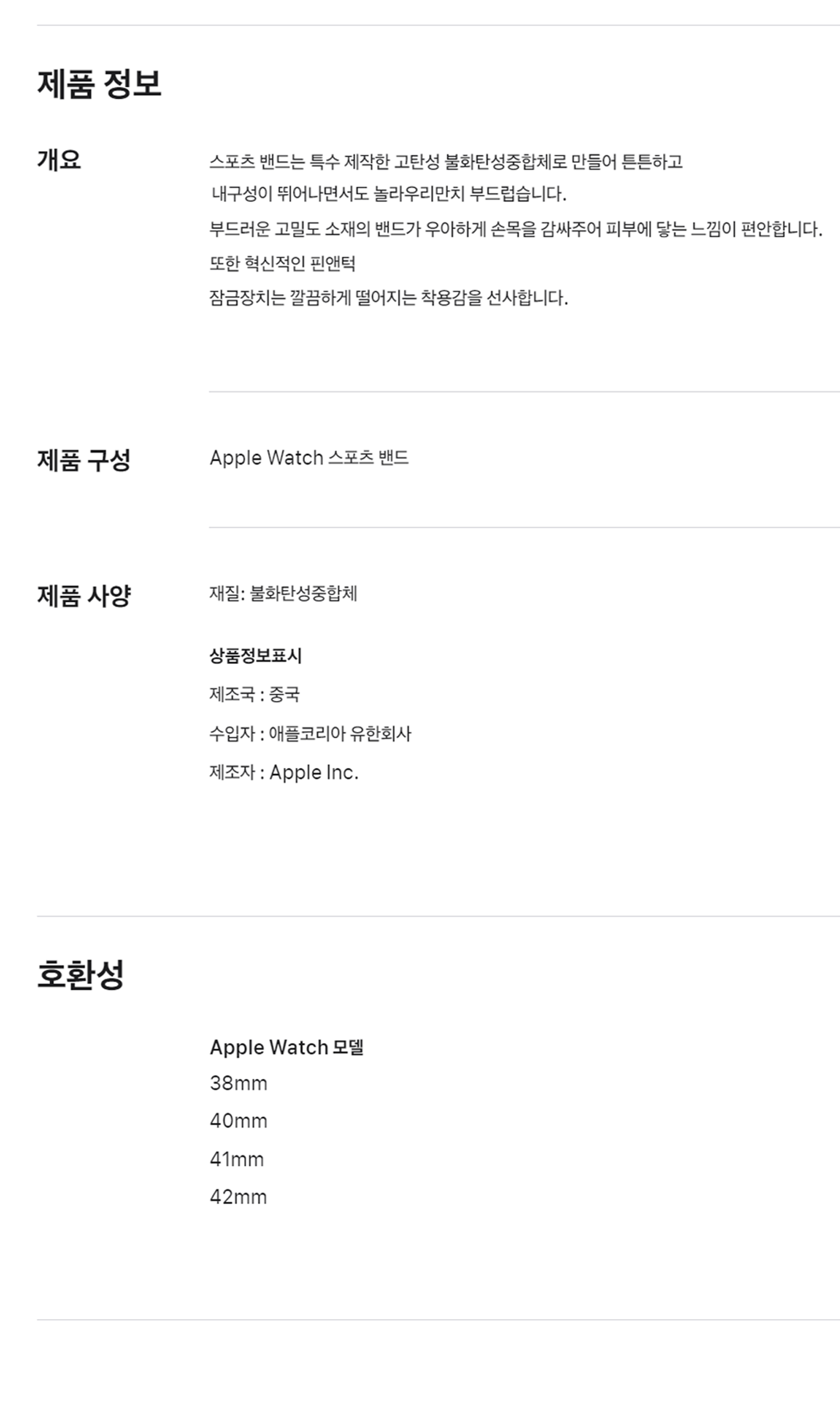 | 품명 및 모델명 | 42mm Light Blush Sport Band - S/M | 인증/허가 사항 | 해당없음 |