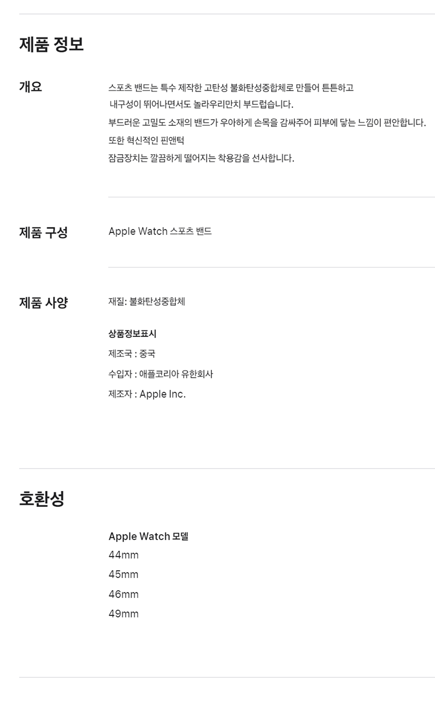 | 품명 및 모델명 | 46mm Stone Gray Sport Band - S/M | 인증/허가 사항 | 해당없음 |