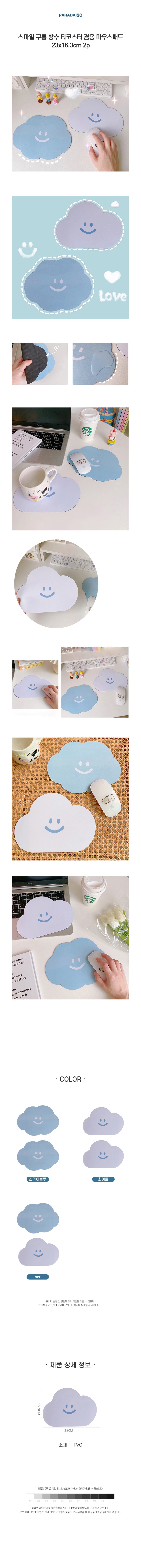 파라다이소 스마일 구름 방수 티코스터 겸용 마우스패드 23 x 16.3 cm