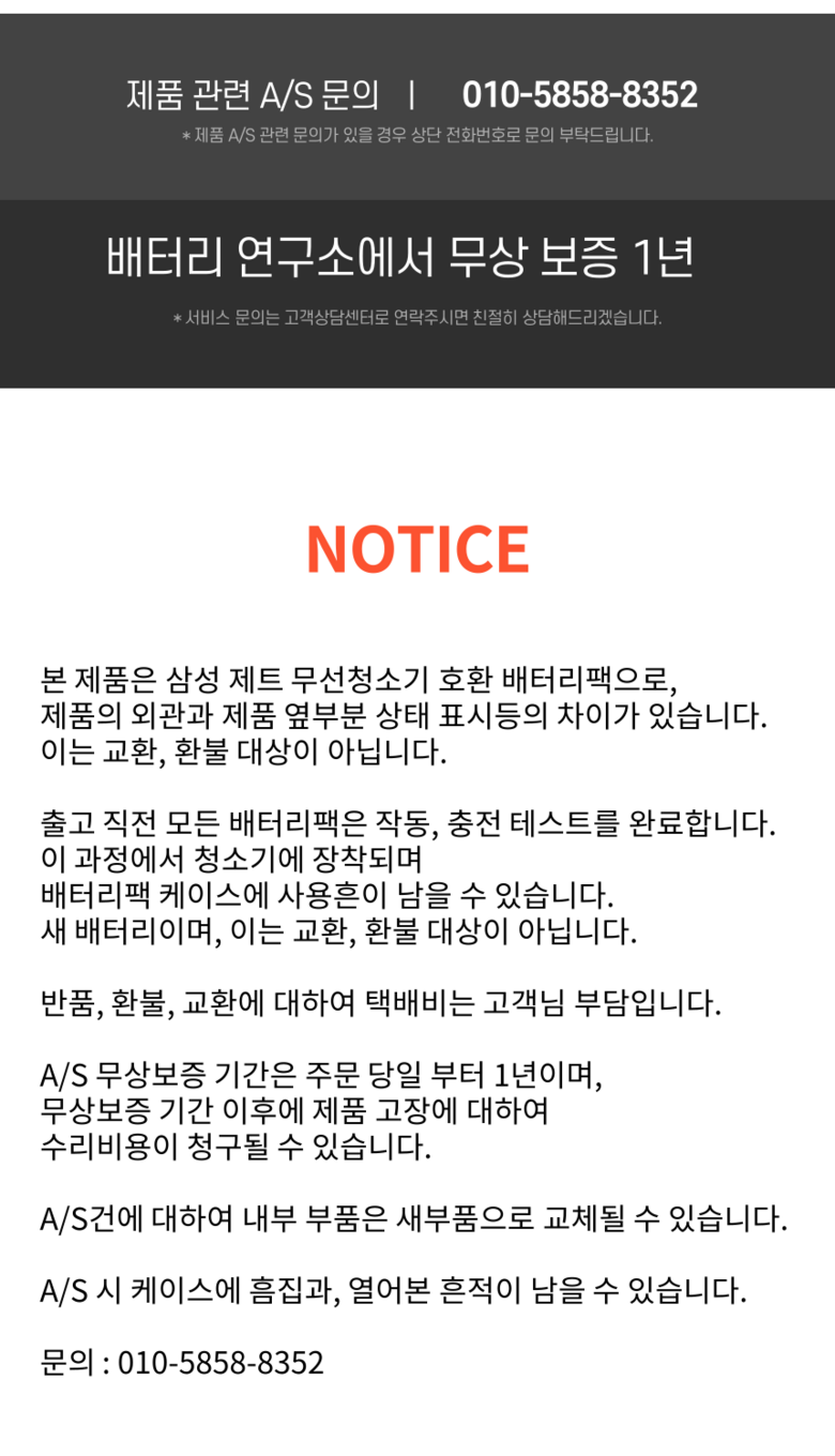 - ㆍ제조사의 사정 (신모델 출시 등) 및 부품 가격 변동 등에 의해 무료 교환/반품으로 요청하는 경우