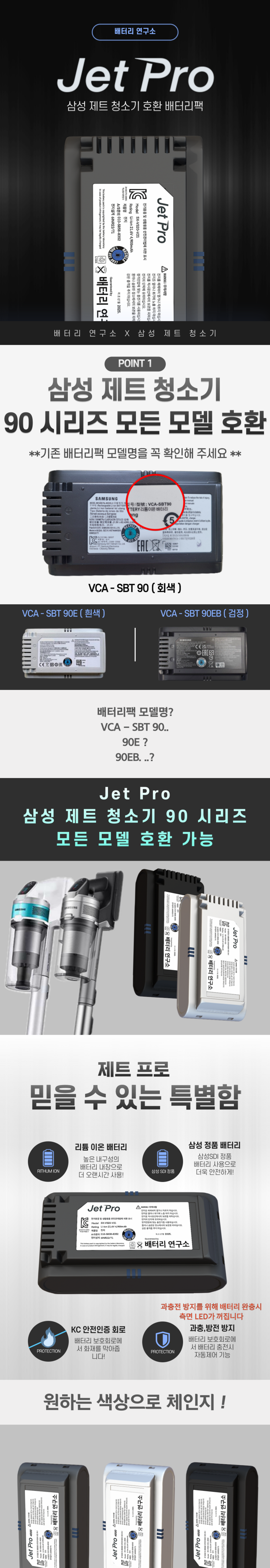 | 품명 및 모델명 | 삼성 제트 무선청소기 VCA-SBT90 배터리 팩 국내제작 호환용 보증기간 1년, 용량 4000mAh | KC 인증정보 | ZA10087-23001 |