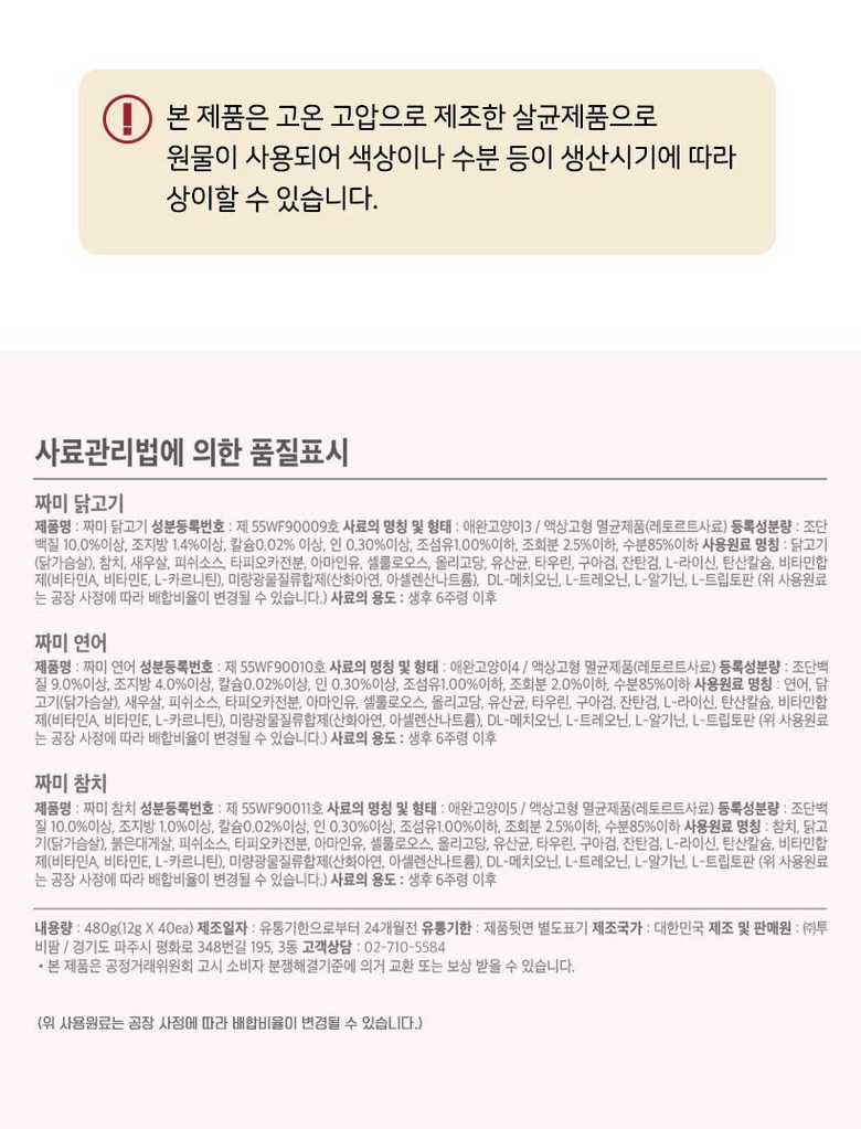 - 반려동물 대상: 고양이용
