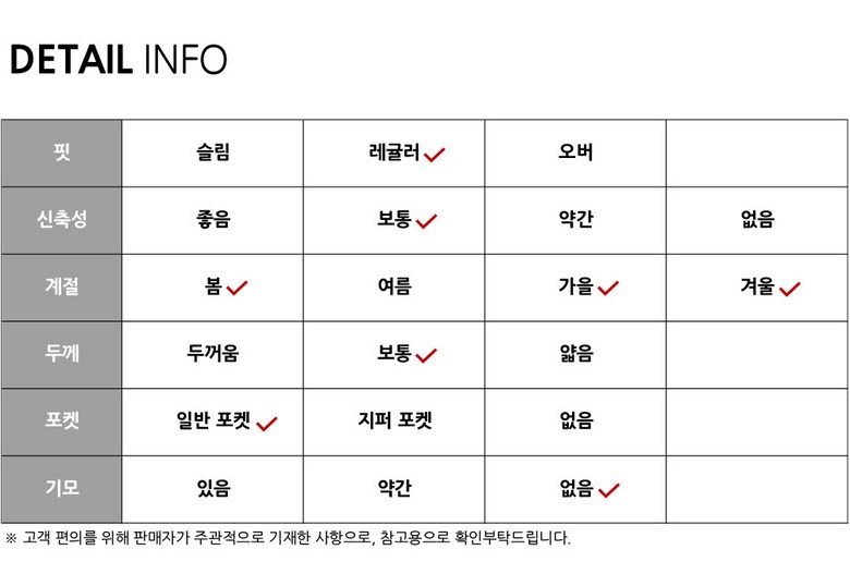 | 제품 소재 | 상품 상세페이지 참조 | 색상 | 상품 상세페이지 참조 |
