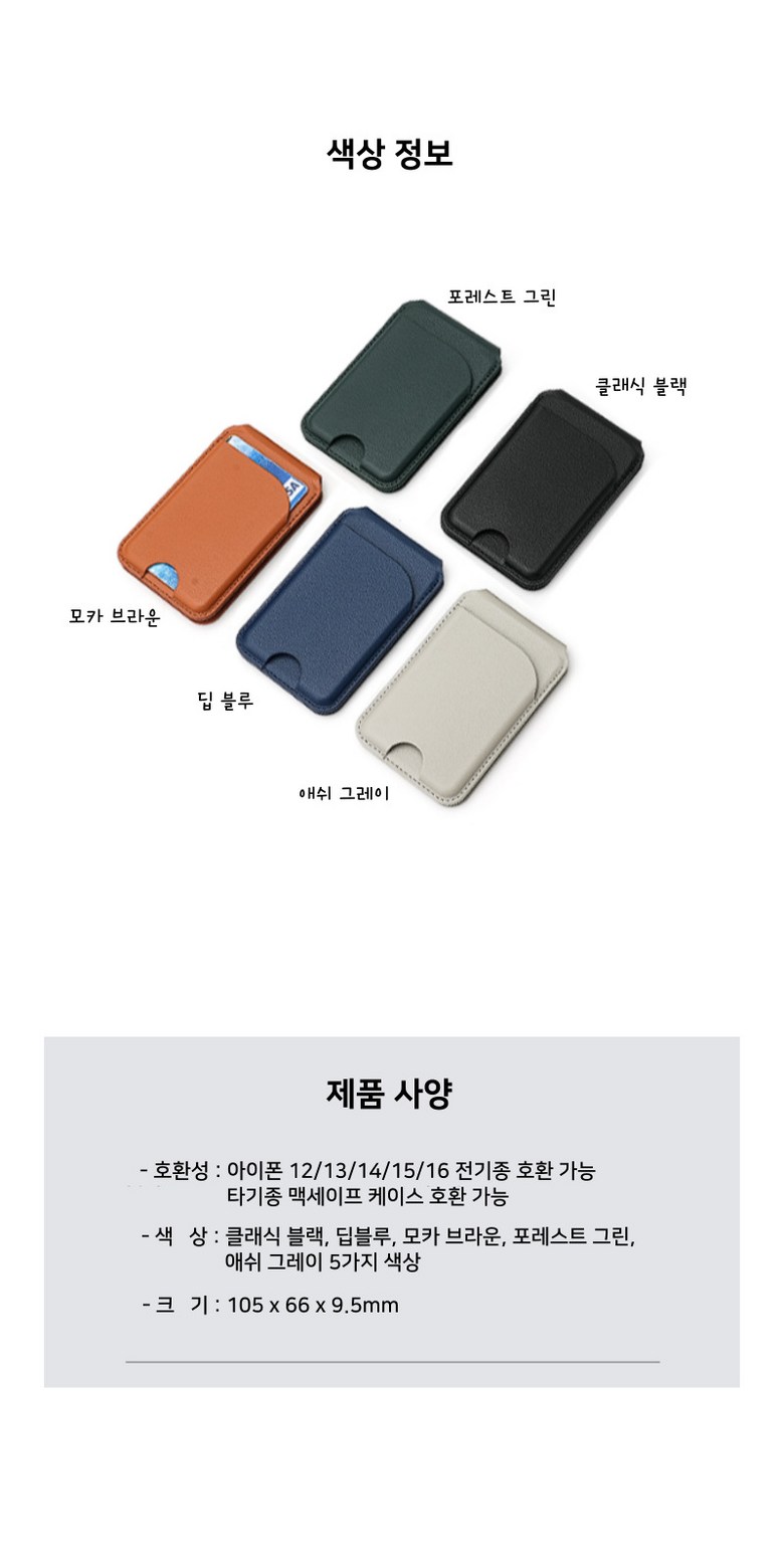 | 품명 및 모델명 | 제나모라 맥세이프 카드지갑 거치대 | 인증/허가 사항 | 상품 상세페이지 참조 |