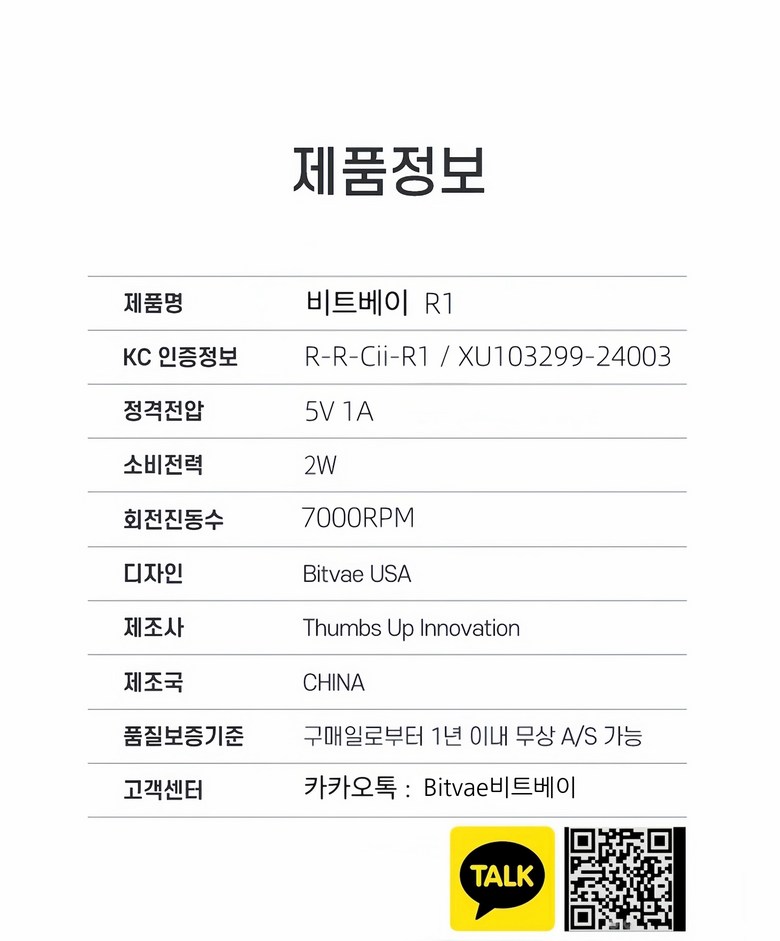 | 제조자(수입자) | THUMBS UP INNOVATIONS TECHNOLOGY CO,LTD. | 제조국 | 중국 |