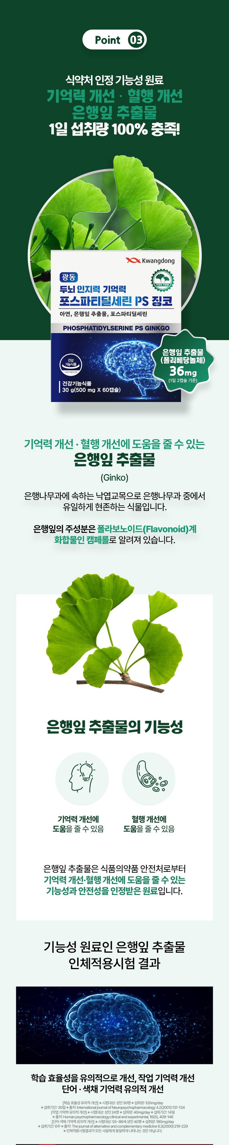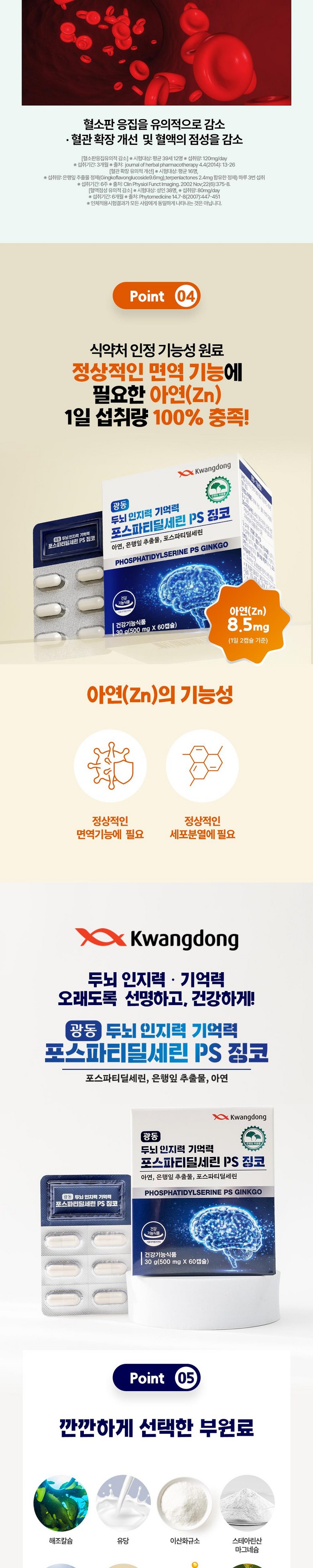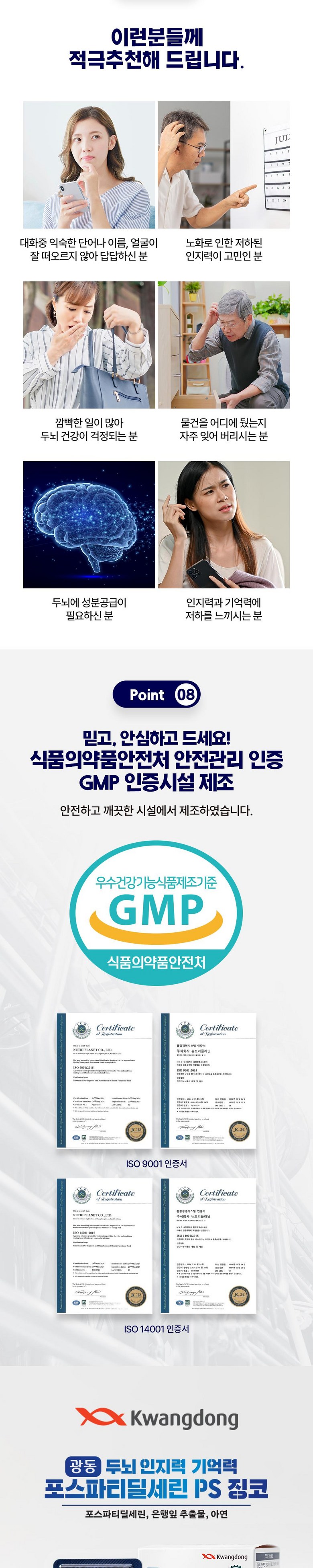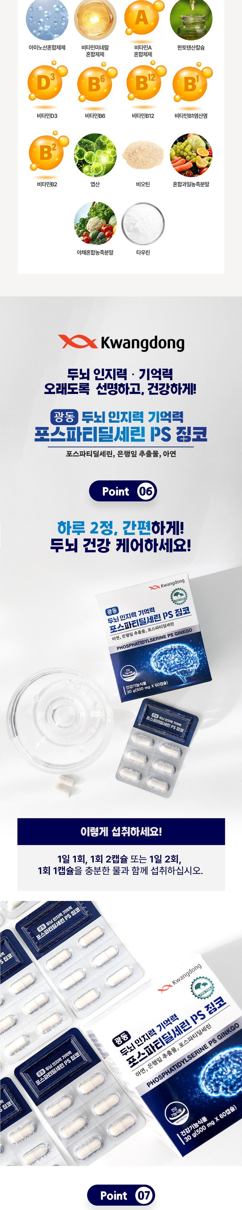 | 제품명 | 광동 두뇌 인지력 기억력 포스파티딜세린 PS 징코 | 제조업소의 명칭과 소재지 | (주)뉴트리플래닛/충청북도 제천시 제2바이오밸리로2길 22 |