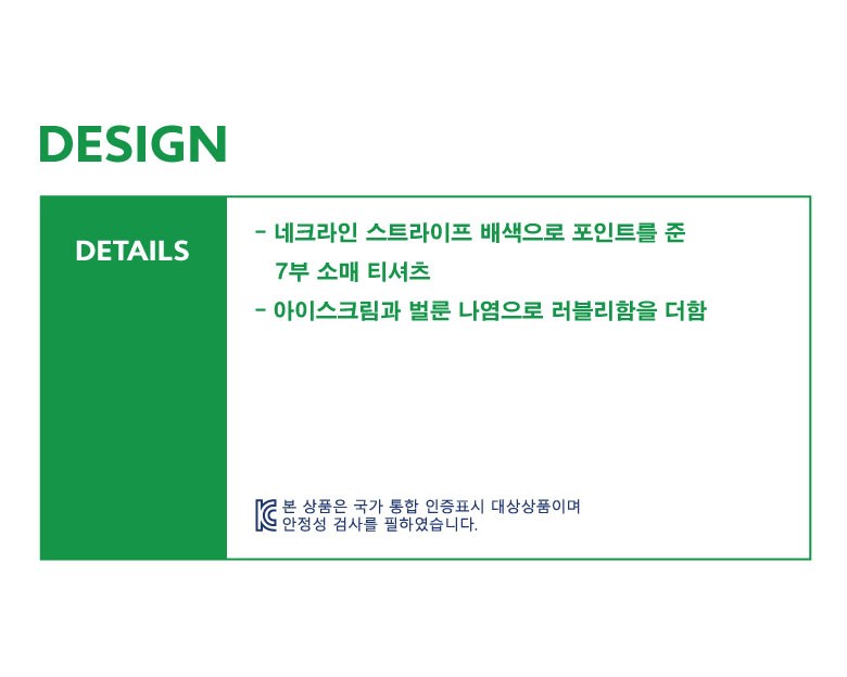 | 품명 및 모델명 | 7부아이스크림티셔츠 | KC 인증정보 | 유/KC마크 |