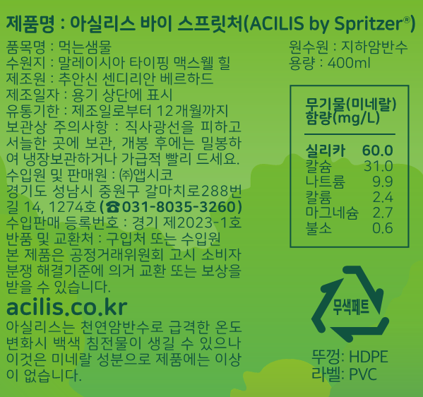| 포장단위별 내용물의 용량(중량), 수량 | 400ml, 24개 | 원재료명 및 함량 | 컨텐츠 참조 |