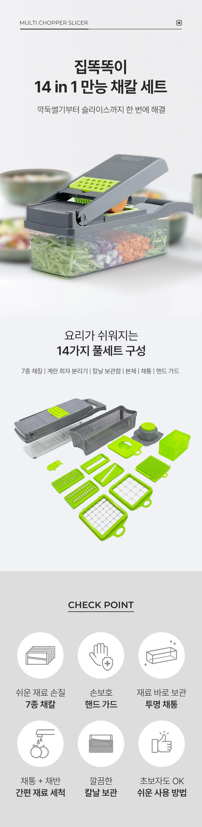 | 품명 및 모델명 | 집똑똑이 14 in 1 만능 채칼 세트 | 재질 | 상품 상세페이지 참조 |