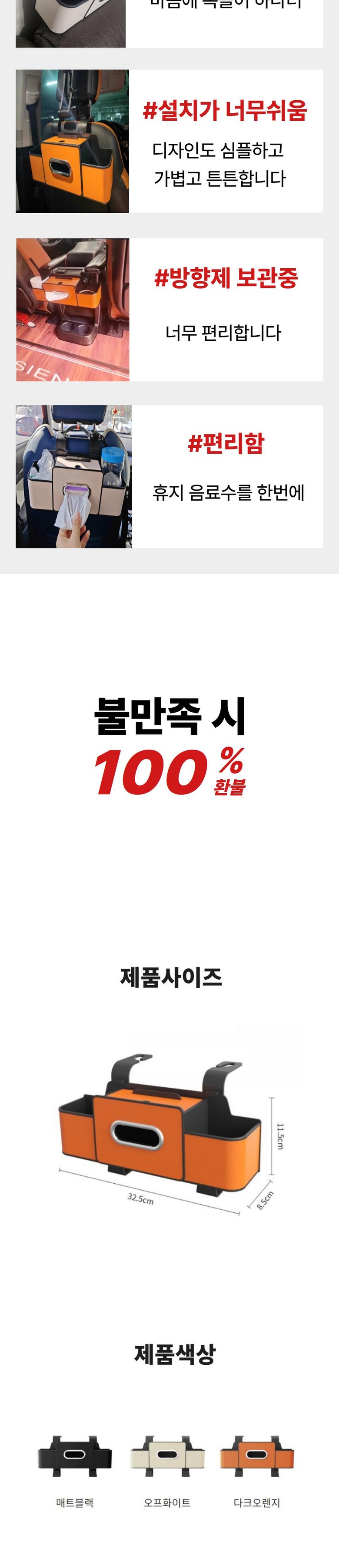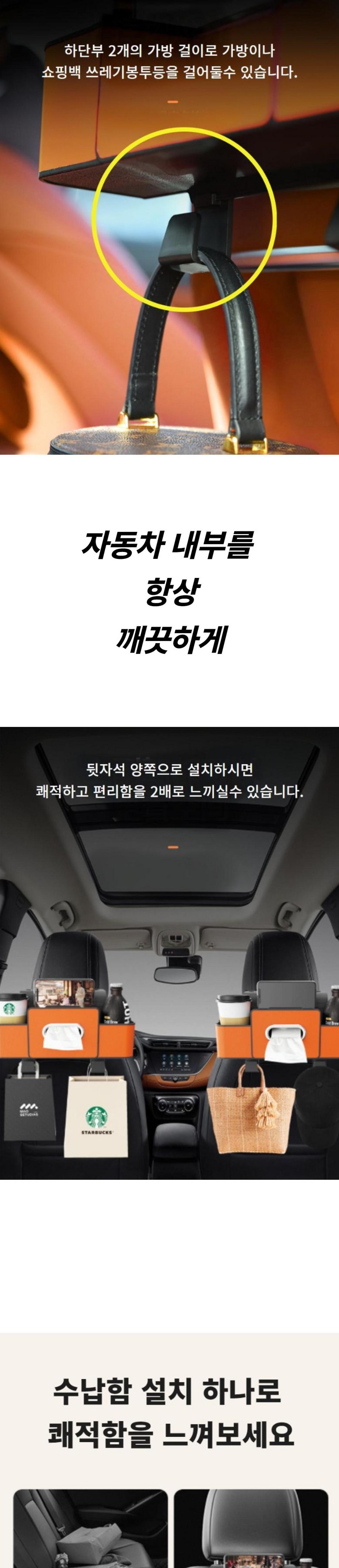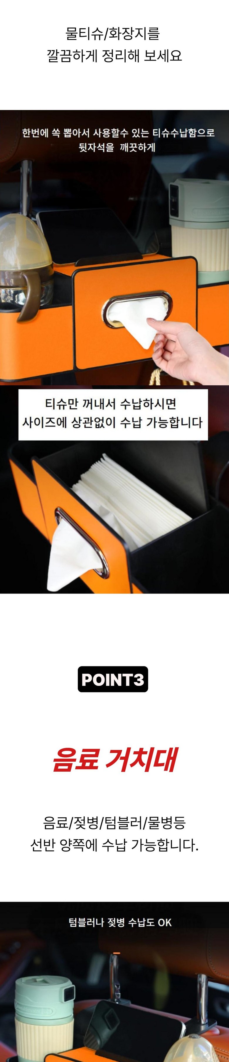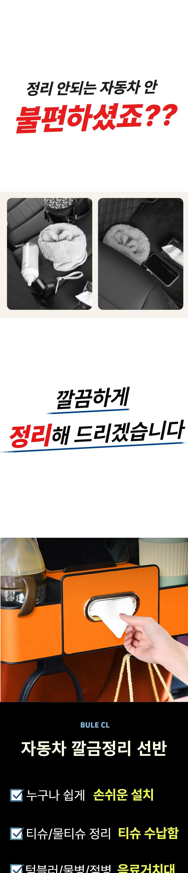 블루씨엘 자동차 뒷자석 컵홀더 티슈 다용도 수납함