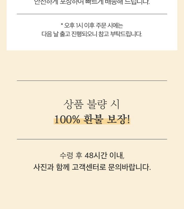 - ㆍ모니터 해상도의 차이로 인해 색상이나 이미지가 실제와 달라, 고객이 단순 변심으로 교환/반품을 무료로 요청하는 경우