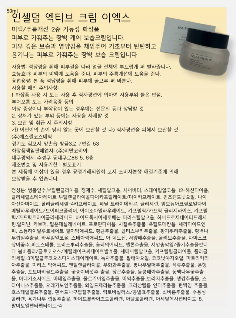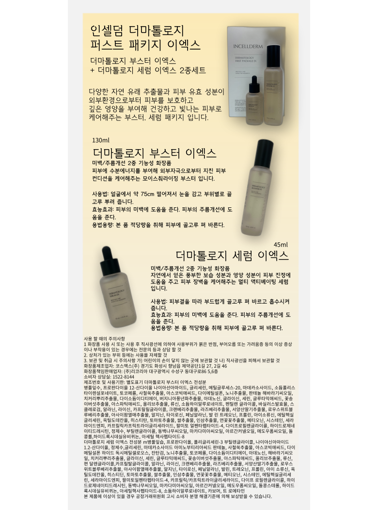 | 화장품제조업자, 화장품책임판매업자 및 맞춤형화장품판매업자 | 상품 상세페이지 참조 | 제조국 | 상품 상세페이지 참조 |