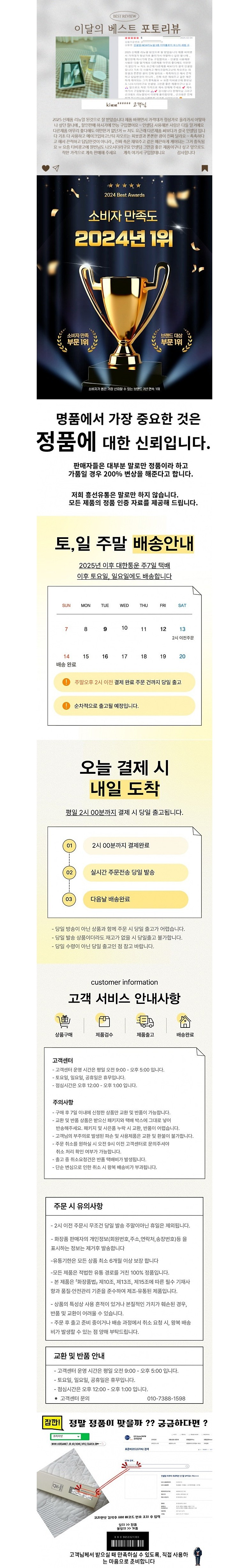- ㆍ모니터 해상도의 차이로 인해 색상이나 이미지가 실제와 달라, 고객이 단순 변심으로 교환/반품을 무료로 요청하는 경우